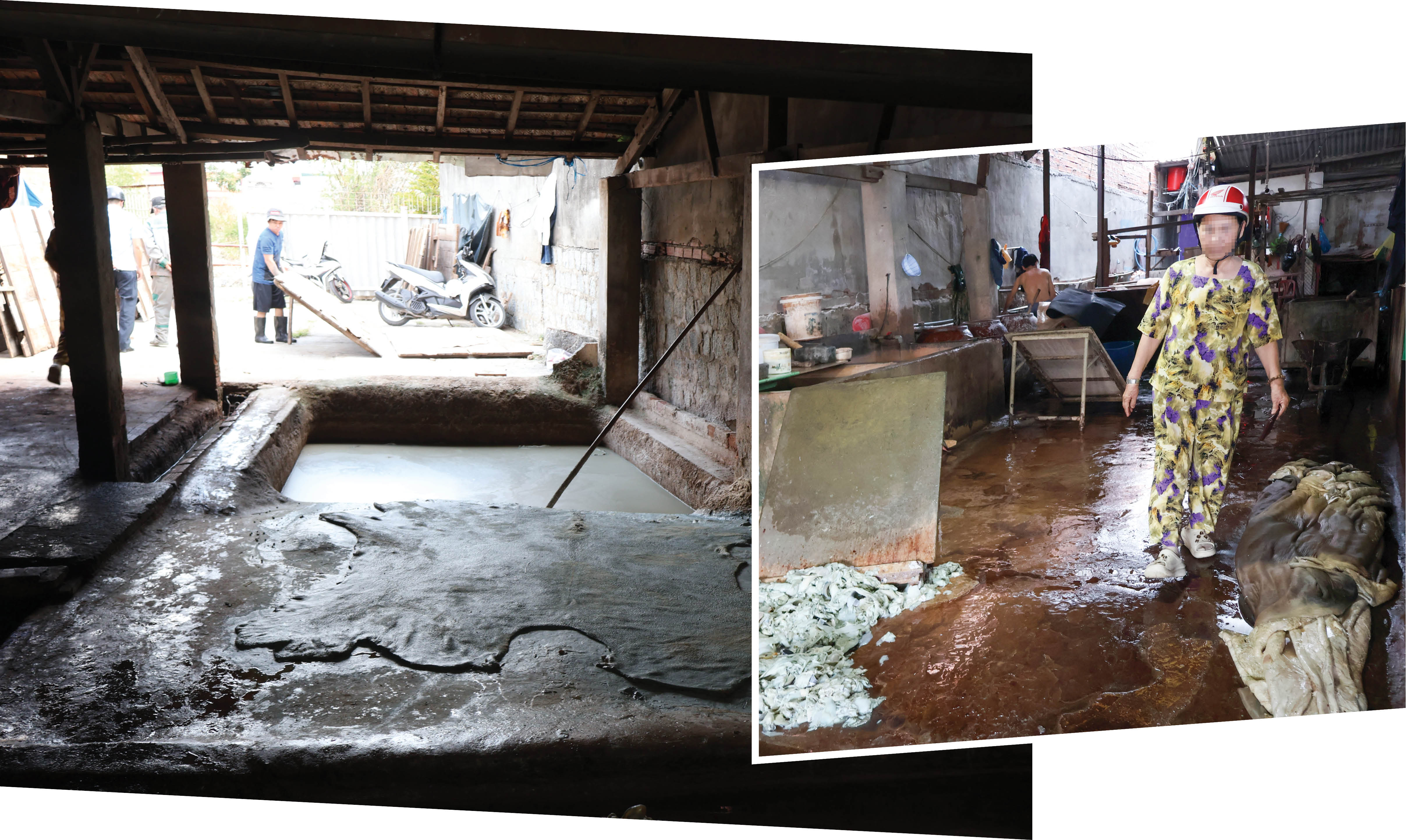 | Cơ sở sản xuất da bò ở xã Vĩnh Hiệp hoạt động ngày 3-3. |