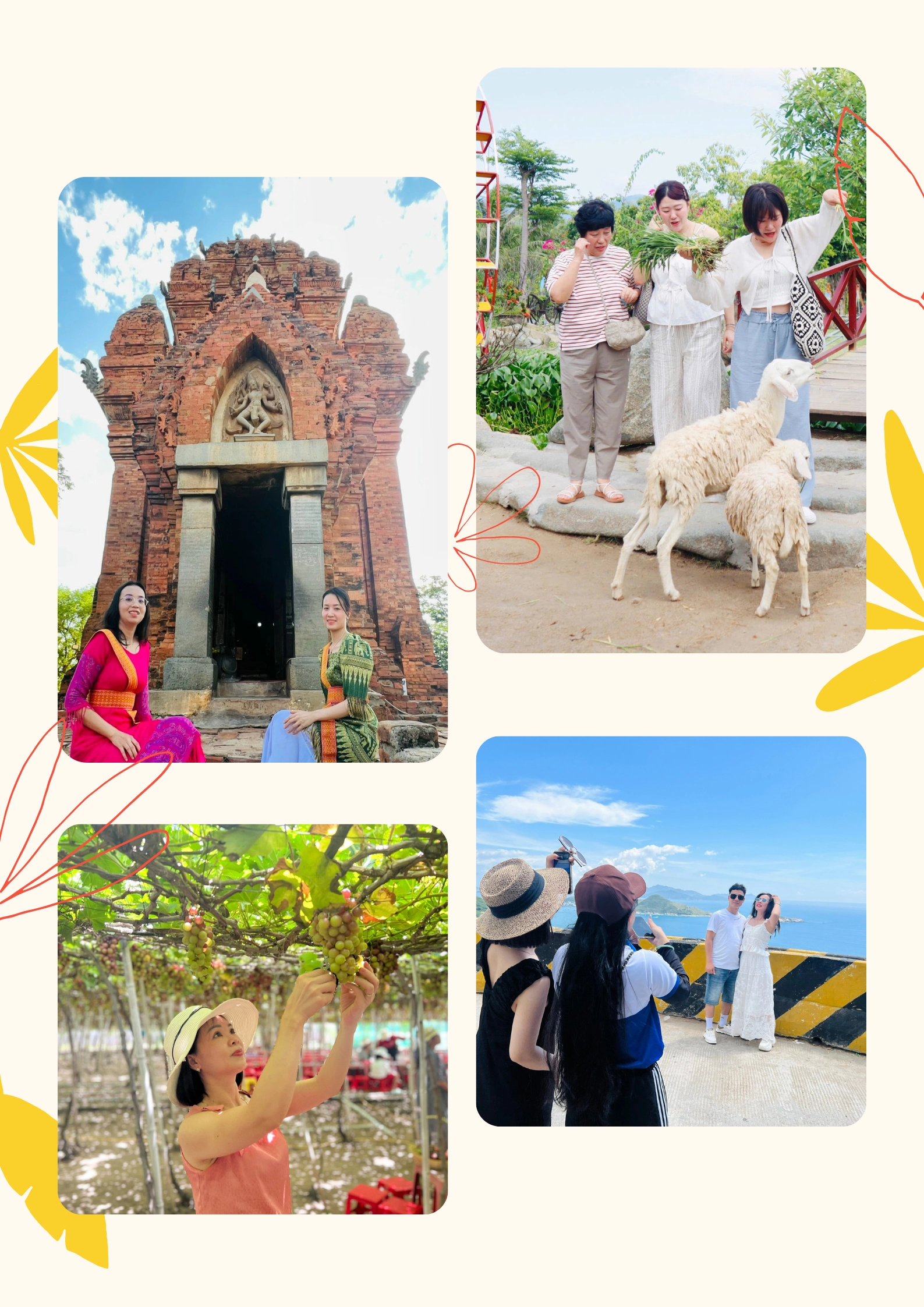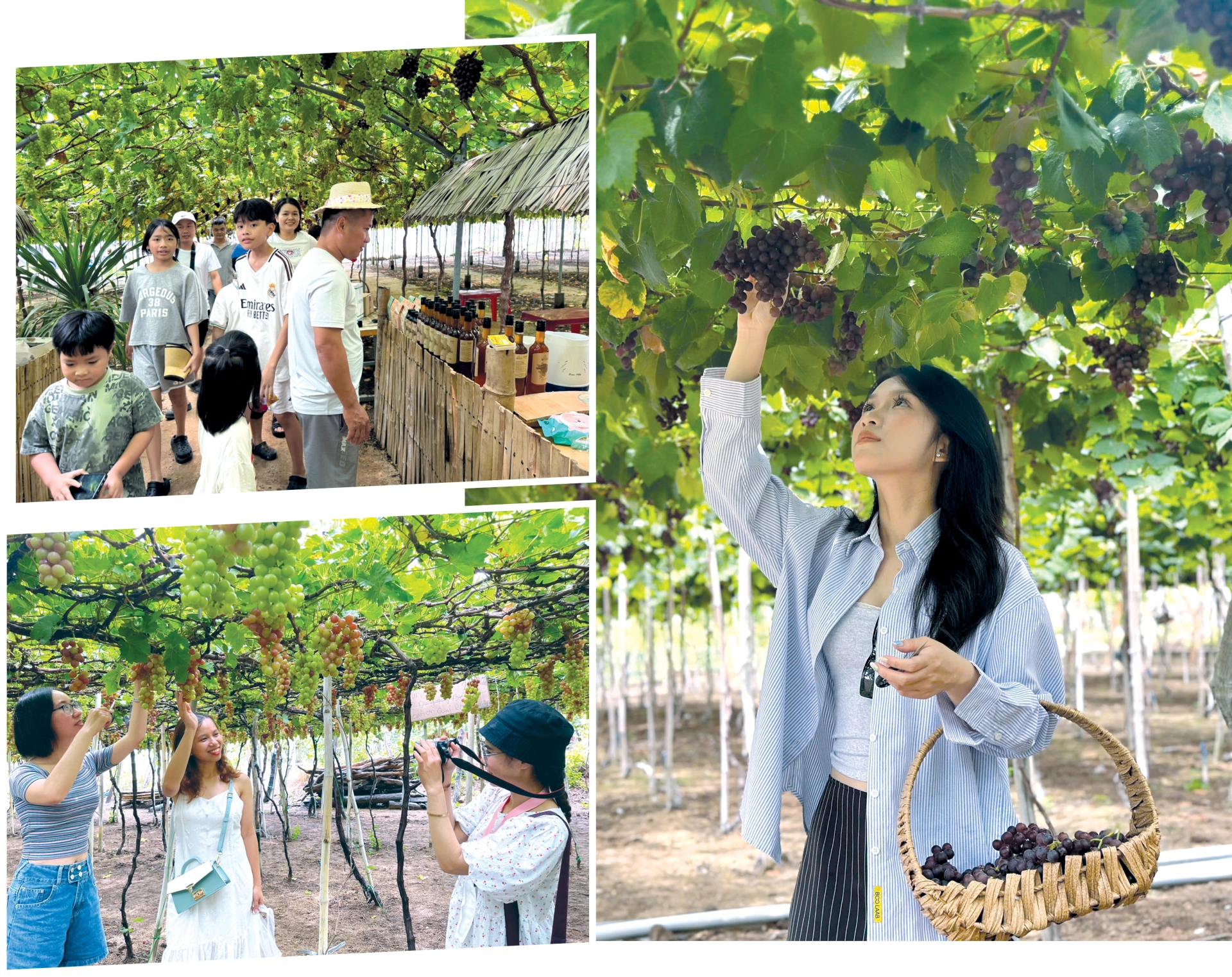 Vùng đất phía nam của Khánh Hòa có lượng mưa thấp nhất cả nước, gần như nắng quanh năm. Chính điều đó tạo nên khung cảnh bán hoang mạc hiếm gặp ở Việt Nam, với đồi cát, đồng cỏ, thảo nguyên khô - rất lý tưởng để phát triển trồng nho, táo, nuôi cừu, dê… Trong chuyến đi lần này, chúng tôi đã kịp ghé thăm các vườn nho ở Thái An (xã Vĩnh Hải) thưởng thức nho tươi, mật nho ngay tại vườn, trò chuyện với người dân địa phương. Cái xứ gì mà lạ! Nắng như thiêu như đốt, đất đai khô cằn nhưng lại cho ra thứ quả ngọt. Và cũng như cây trái kia, những con người nơi đây phơi mình dưới cái nắng gay gắt, cần mẫn bám đất bám cát để mà sống nhưng tâm hồn ai cũng chân chất, ngọt lành!
