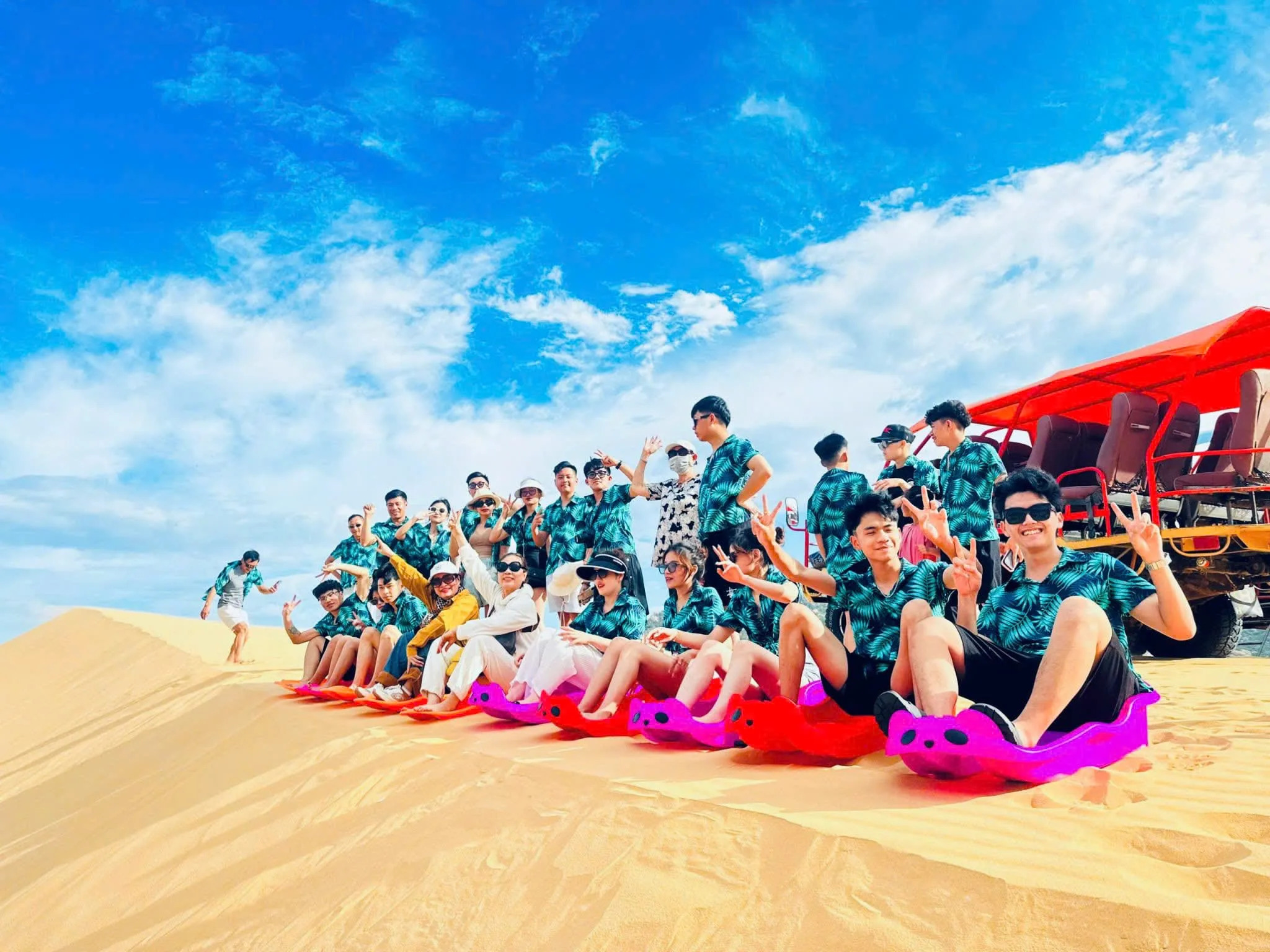 | Du khách vui chơi tại đồi cát Mũi Dinh. |