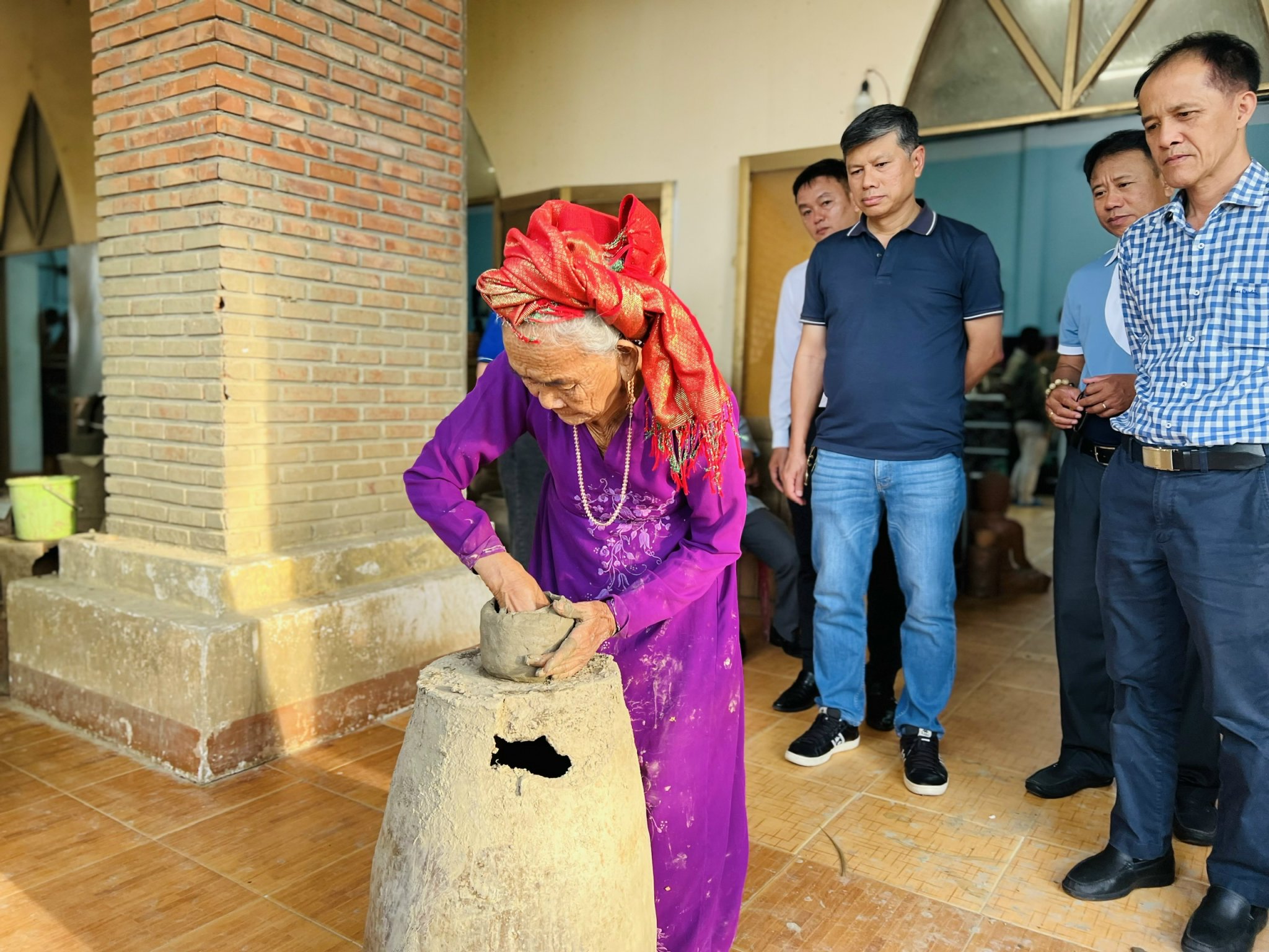 | Nghệ nhân Đàng Thị Gạch trình diễn kỹ thuật làm gốm Bàu Trúc. |