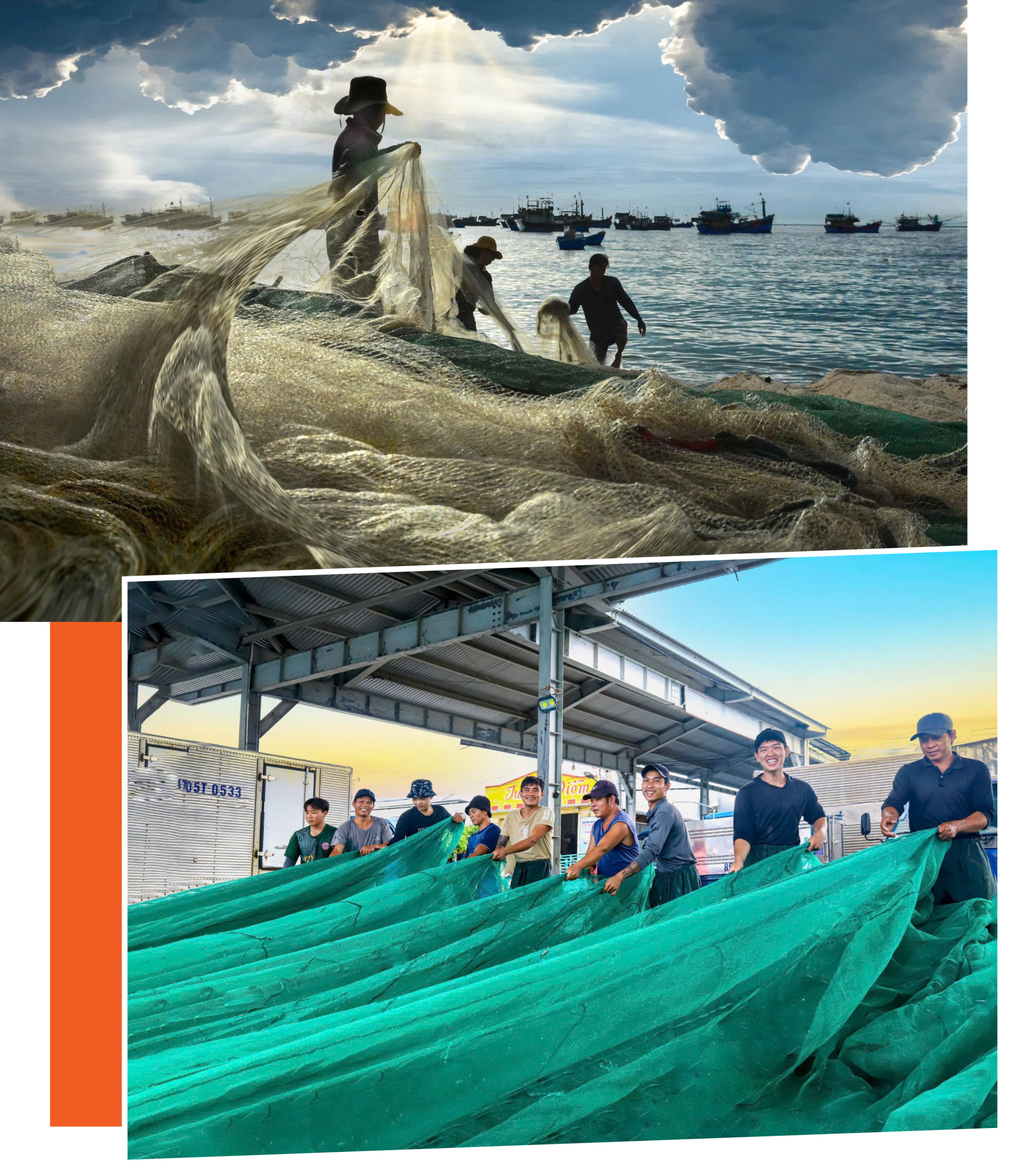 | Ngư dân xã Cà Ná chuẩn bị lưới ra khơi đánh bắt cá. |