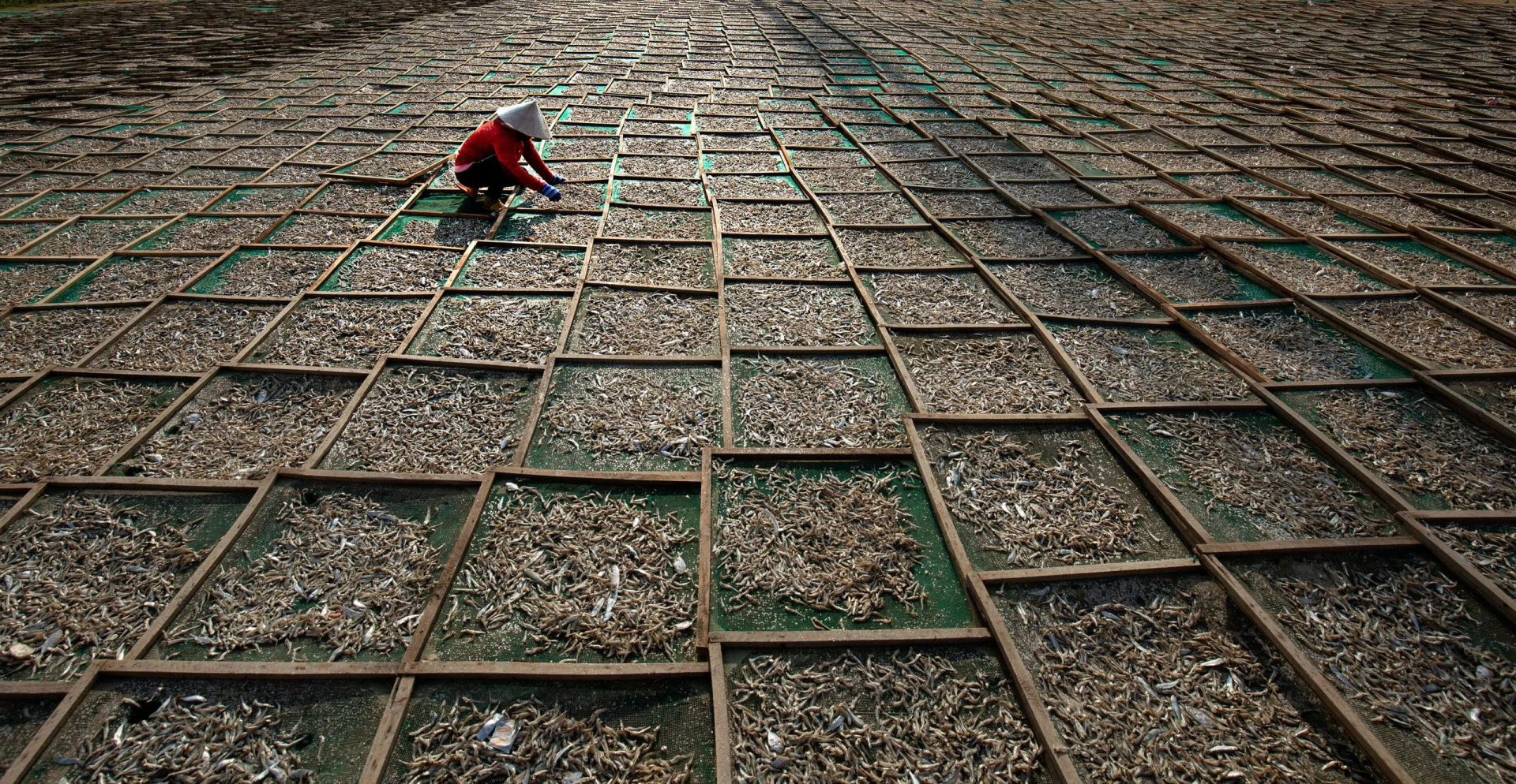 | Công nhân kiểm tra độ khô của cá. |