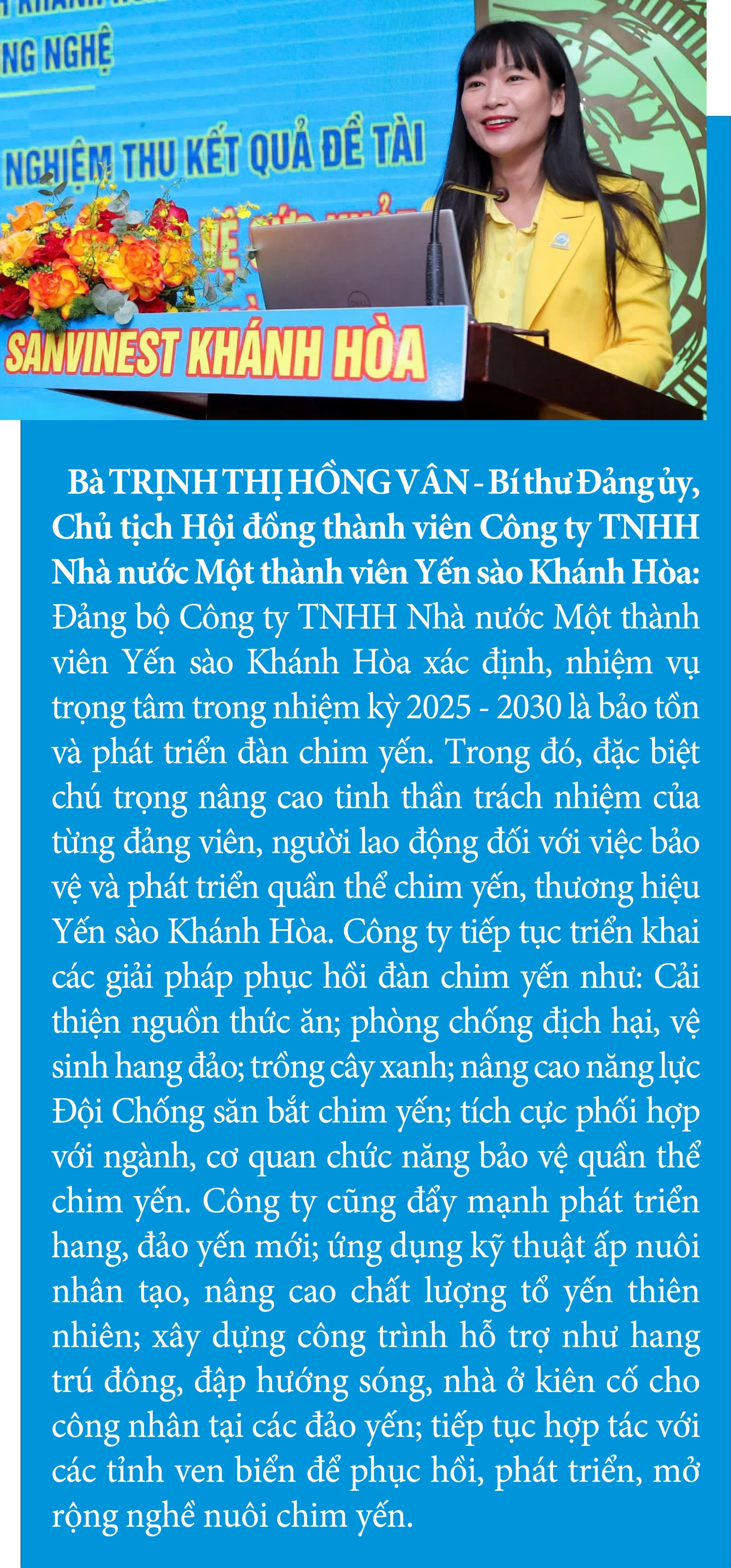 Tiếng chim yến vang vọng trên bầu trời, đó không chỉ là âm thanh của sự sống, mà còn là lời nhắc nhở về trách nhiệm gìn giữ môi trường sinh thái của toàn dân. Chỉ khi có sự chung tay, vào cuộc của toàn xã hội; cơ quan quản lý nỗ lực, thực hiện hiệu quả từ việc cứu hộ, đến việc xây dựng cơ chế, chính sách, quy định pháp luật đủ sức răn đe thì loài chim sản sinh ra "vàng trắng" mới thực sự được bảo vệ, mang lại giá trị bền vững cho kinh tế địa phương và ngành nghề yến sào Khánh Hòa.