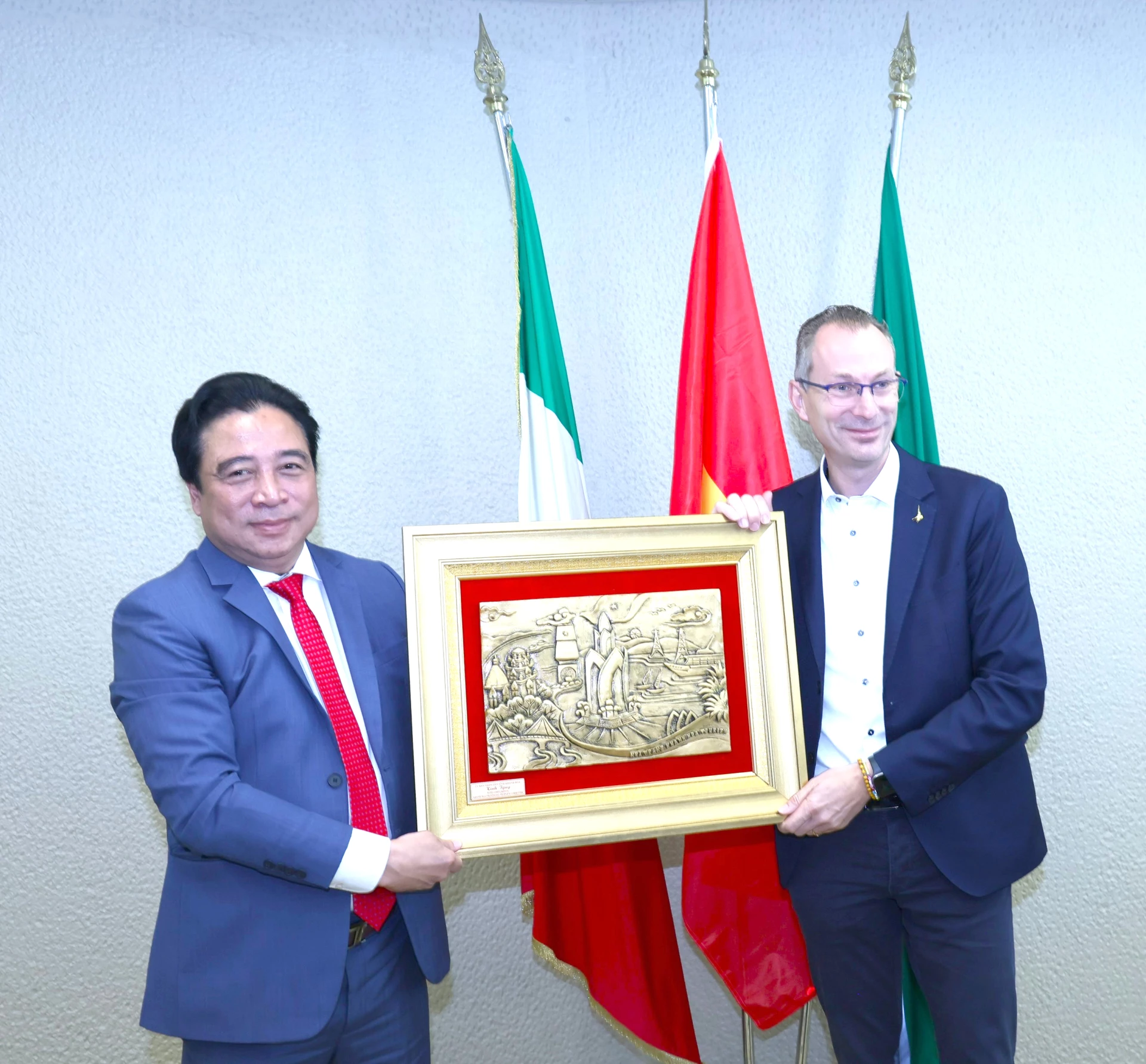 Tại buổi làm việc, sau khi giới thiệu tiềm năng, thế mạnh kinh tế của Khánh Hòa, Chủ tịch UBND tỉnh Nguyễn Khắc Toàn đề nghị Đại sứ quán Việt Nam tại Italia hỗ trợ kết nối với các địa phương, tổ chức xúc tiến thương mại - đầu tư, hiệp hội doanh nghiệp Italia trong các lĩnh vực thế mạnh như du lịch biển đảo, kinh tế biển, công nghiệp chế biến - chế tạo, logistics, y tế chất lượng cao và công nghệ xanh. Đồng thời, đồng chí Nguyễn Khắc Toàn cũng mong muốn Đại sứ quán hỗ trợ quảng bá hình ảnh du lịch Khánh Hòa tại Italia, giới thiệu các mô hình hợp tác phát triển đô thị thông minh, bảo tồn văn hóa gắn với du lịch.