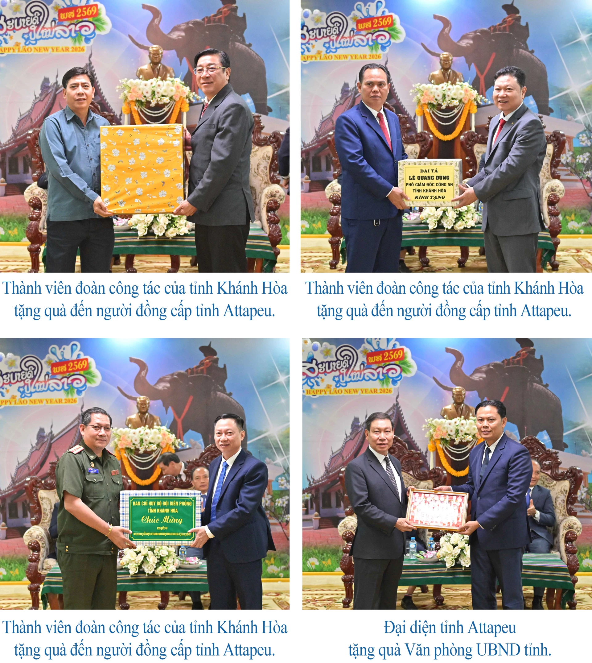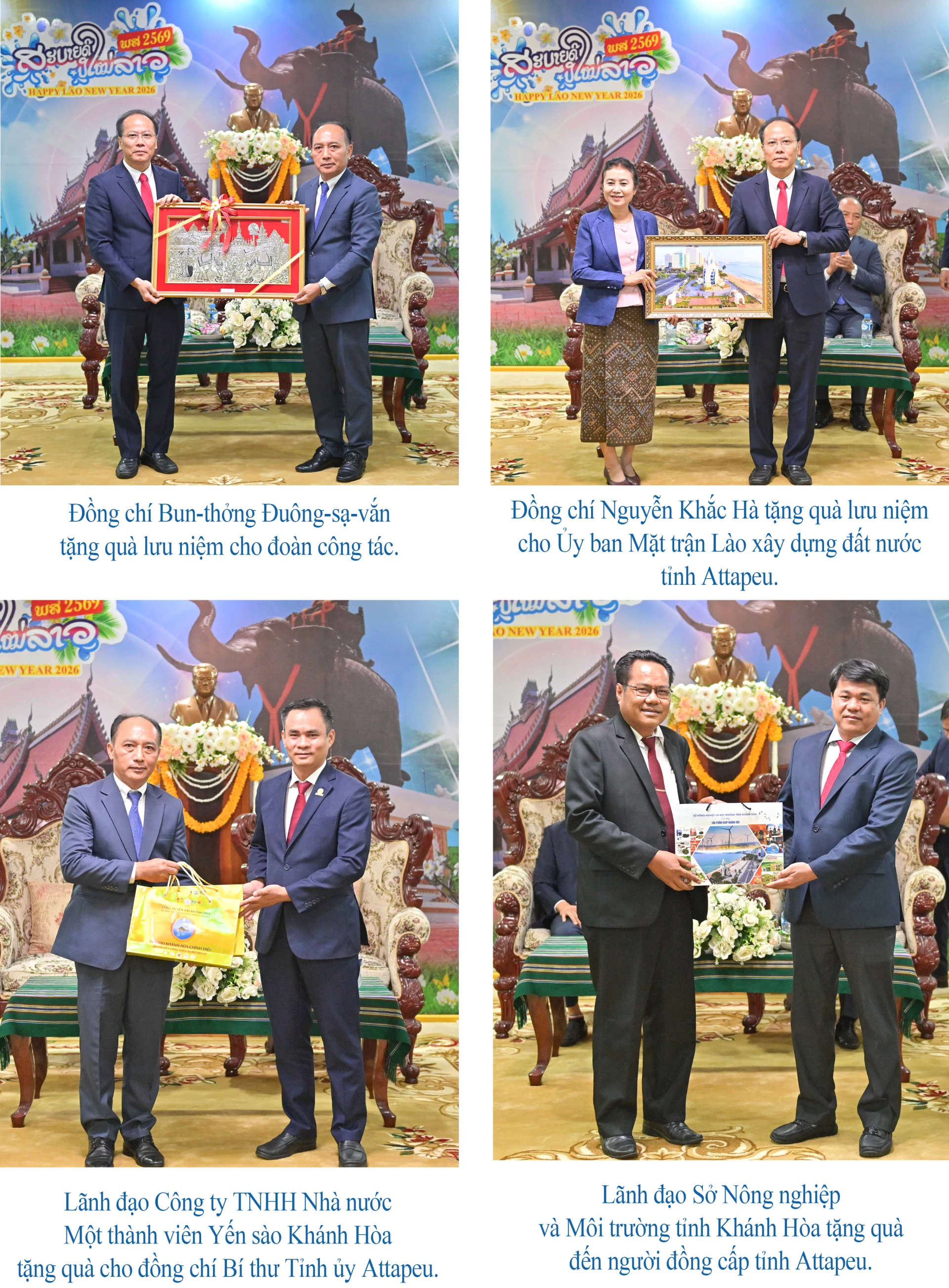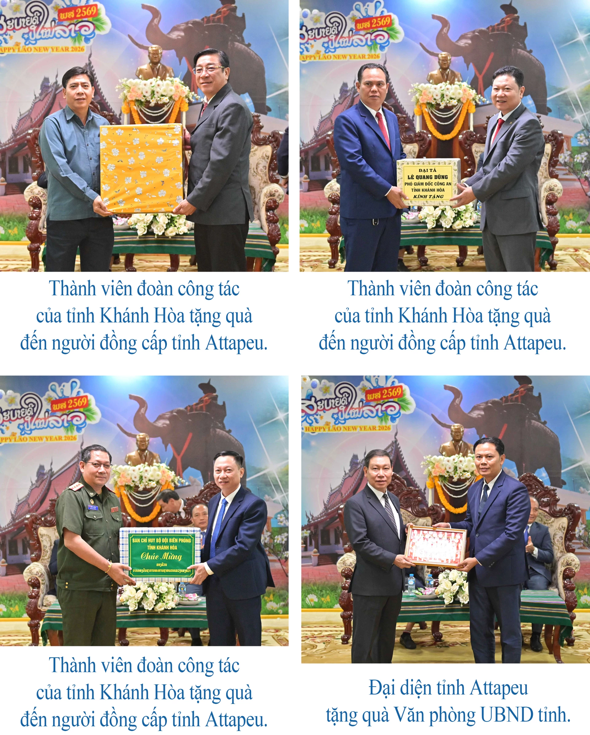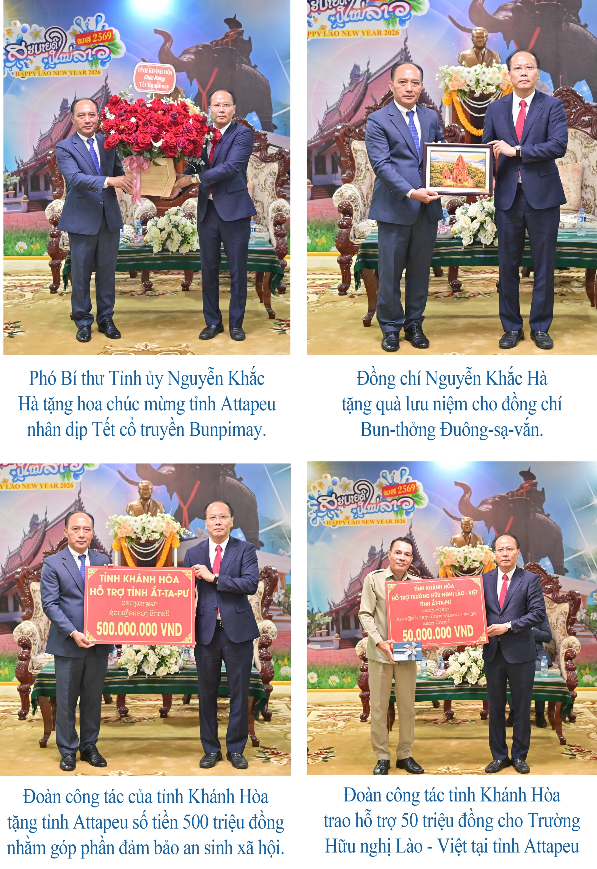 Tại buổi thăm, chúc Tết, lãnh đạo tỉnh Khánh Hòa đã trao kinh phí hỗ trợ của tỉnh Khánh Hòa cho Đảng bộ, Chính quyền và Nhân dân tỉnh Attapeu số tiền 500 triệu đồng; trao hỗ trợ 50 triệu đồng cho Trường Hữu nghị Lào - Việt tại tỉnh Attapeu.