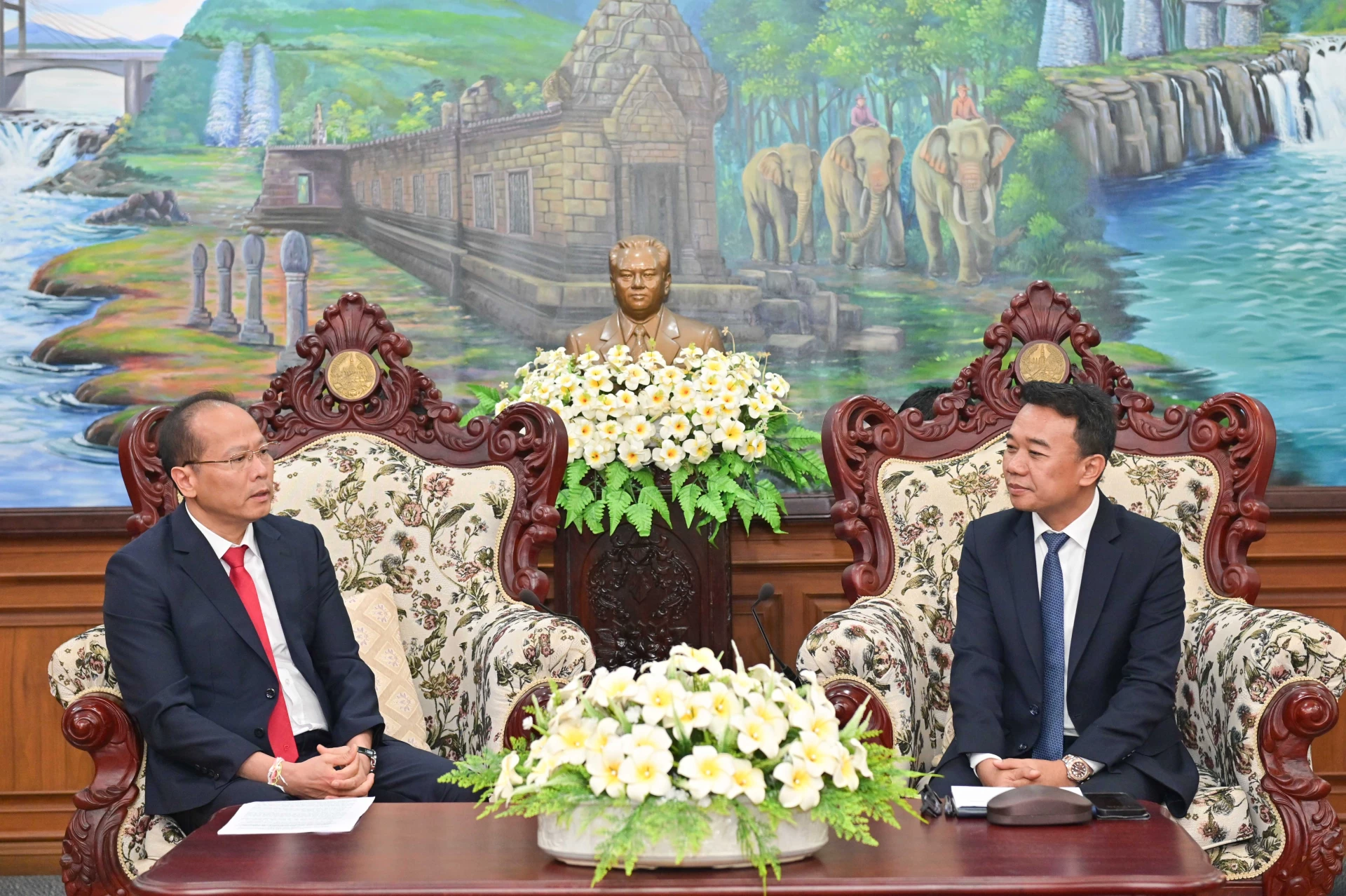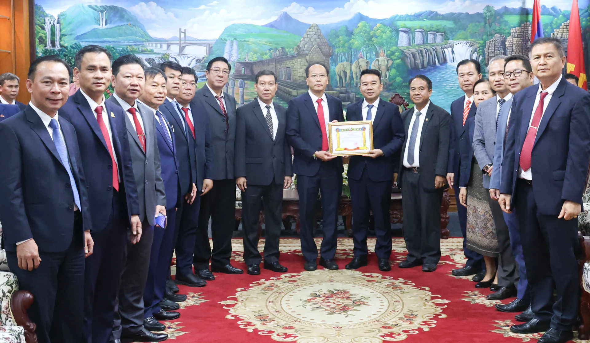 Phó Bí thư Tỉnh ủy Nguyễn Khắc Hà vui mừng và đánh giá cao sự phát triển kinh tế, văn hóa, xã hội của tỉnh Champasak đã đạt được; bày tỏ tin tưởng, với sự lãnh đạo sáng suốt của Đảng bộ, chính quyền và sự nỗ lực của người dân, tỉnh Champasak sẽ ngày càng phát triển. Đặc biệt, vừa qua, tỉnh Champasak đã tổ chức thành công Đại hội đại biểu Đảng bộ tỉnh lần thứ IX. Đồng chí Nguyễn Khắc Hà chúc mừng đồng chí A-lun-xay Sủn-nạ-lạt tiếp tục được tin tưởng, tín nhiệm bầu vào Ban Chấp hành Trung ương Đảng Nhân dân Cách mạng Lào, tiếp tục được giao trọng trách Bí thư Tỉnh ủy Champasak.