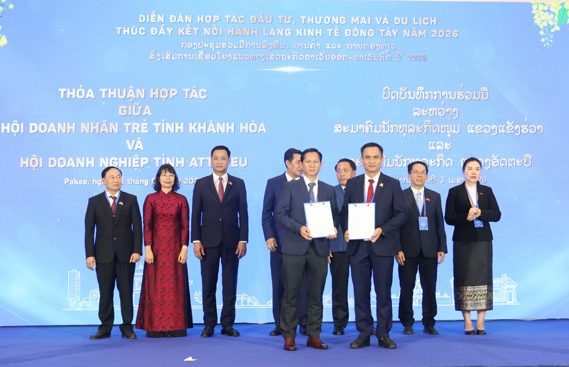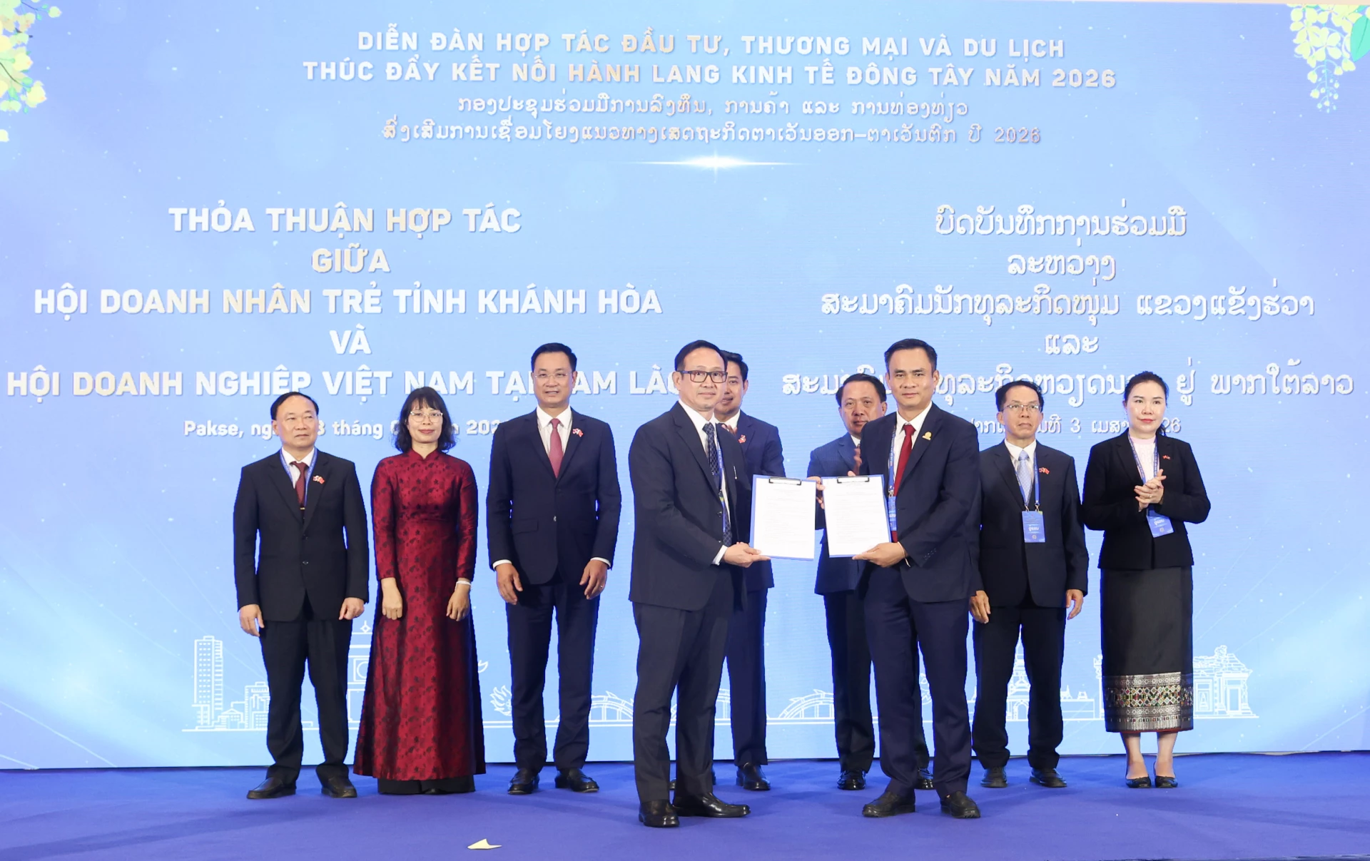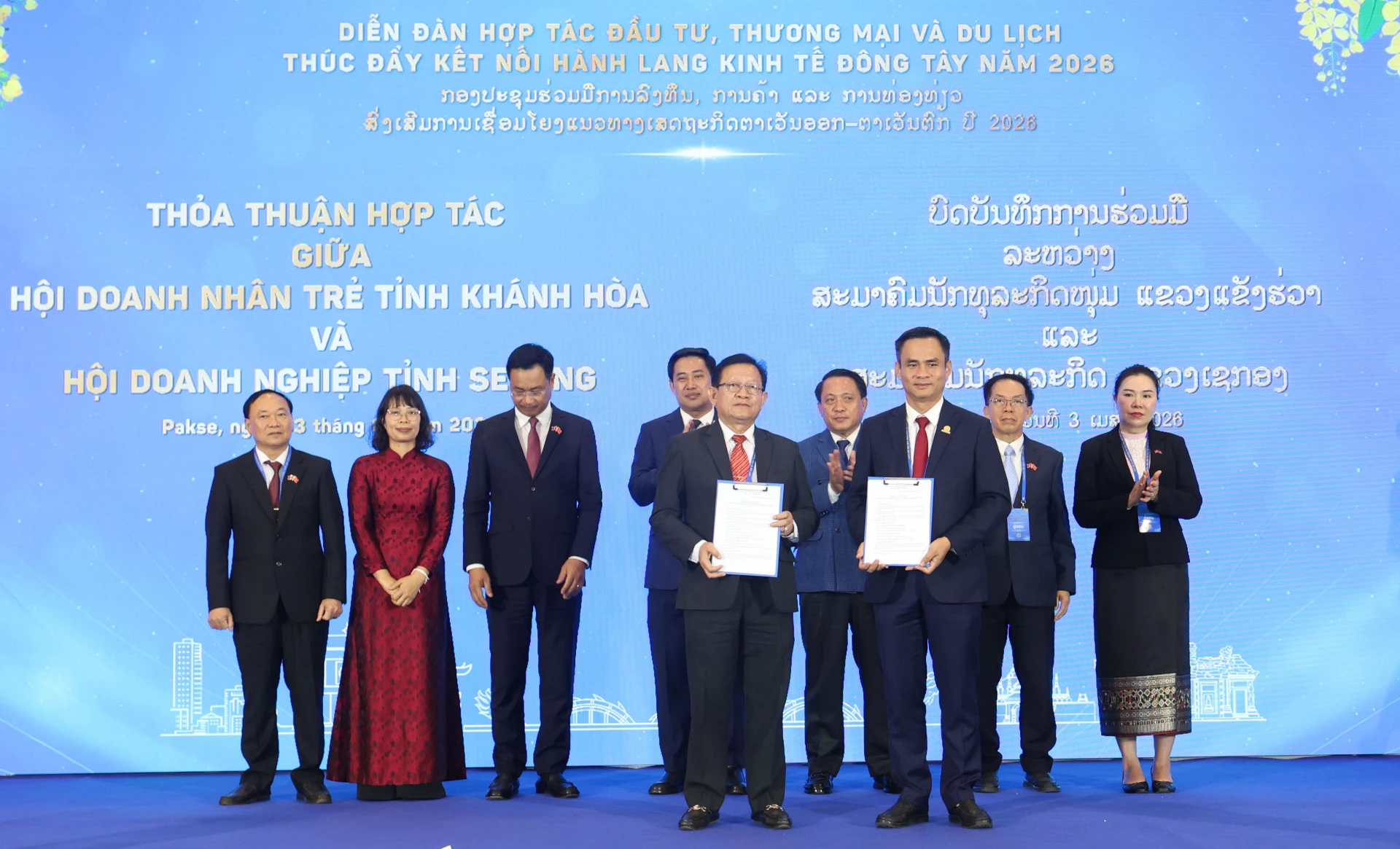 Trong khuôn khổ Diễn đàn Hợp tác đầu tư, thương mại và du lịch thúc đẩy kết nối Hành lang kinh tế Đông - Tây (EWEC) 2026 được tổ chức tại TP. Pakse (tỉnh Champasak, Lào), Hội Doanh nhân trẻ tỉnh Khánh Hòa thực hiện ký kết 3 biên bản ghi nhớ hợp tác (MOU).