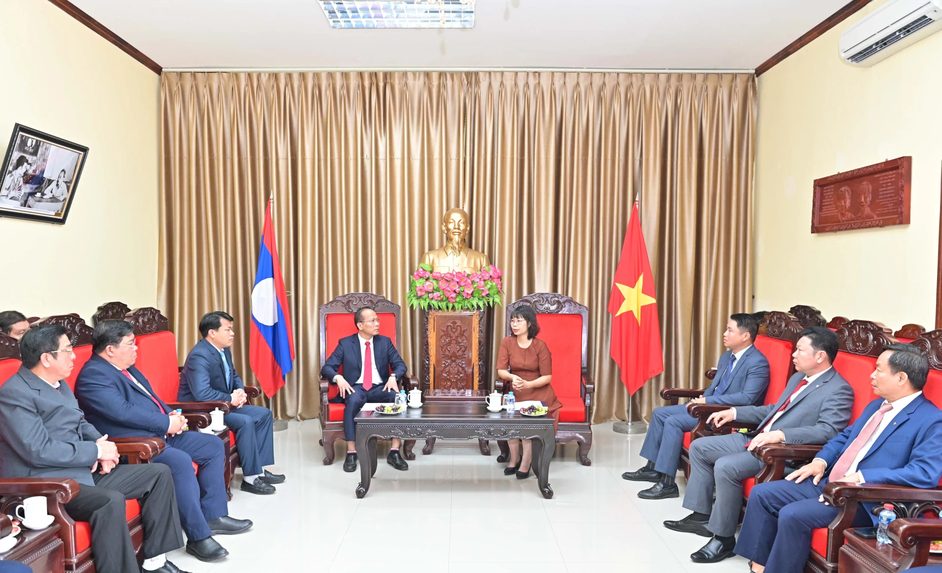 Ngày 2-4, đoàn công tác đã đến thăm, chào xã giao Tổng Lãnh sự quán Việt Nam tại Pakse (tỉnh Champasak, Lào). Đồng chí Tạ Phương Dung - Tổng Lãnh sự Việt Nam tại Pakse tiếp đoàn.