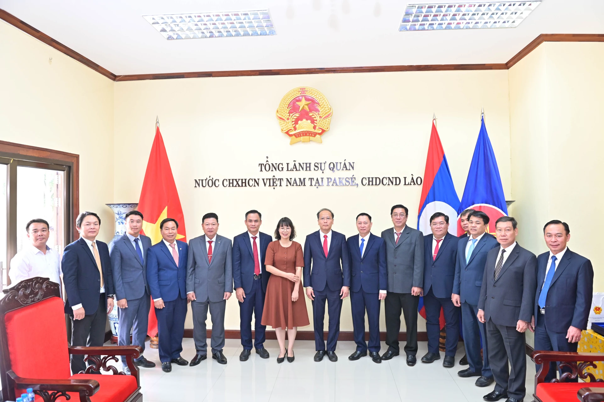 | Đoàn công tác chụp hình lưu niệm cùng Tổng Lãnh sự quán Việt Nam tại Pakse. |