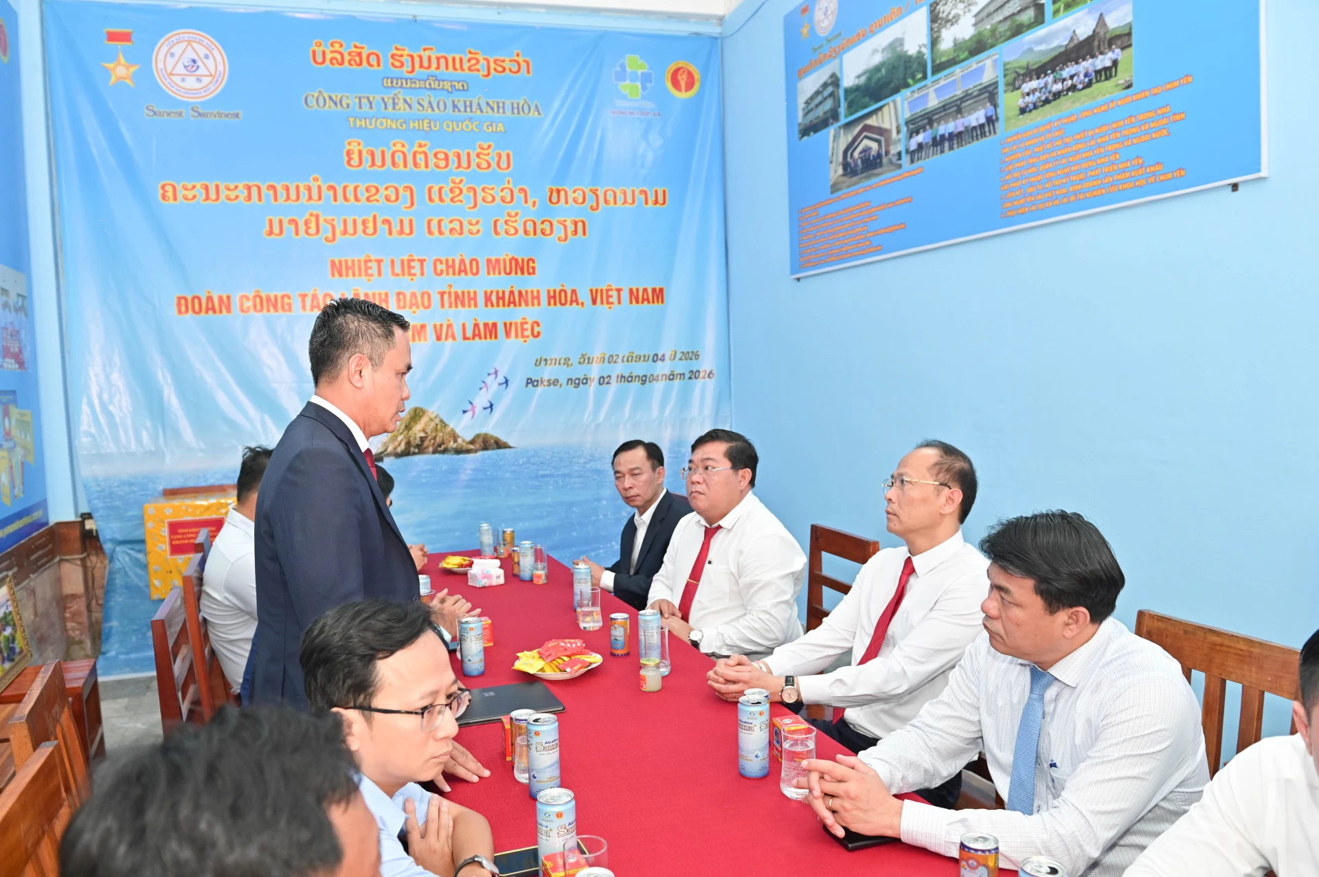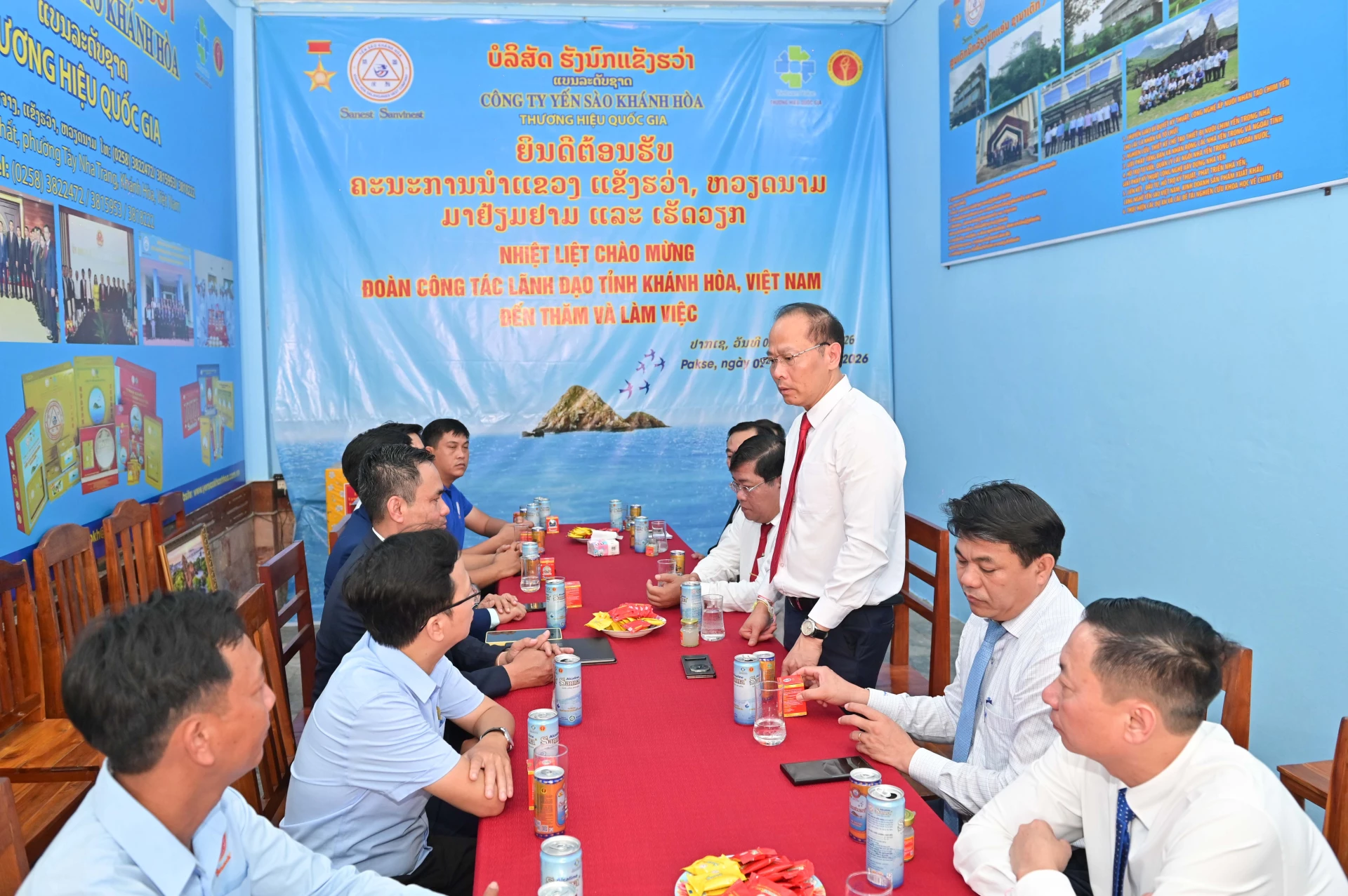 Tại buổi đến thăm, lãnh đạo Công ty Yến sào Khánh Hòa đã báo cáo đến lãnh đạo tỉnh và đoàn công tác tình hình hoạt động của nhà nuôi chim yến của công ty tại Champasak; những thuận lợi, khó khăn trong hoạt động tại nước bạn; đời sống cán bộ, nhân viên công ty...