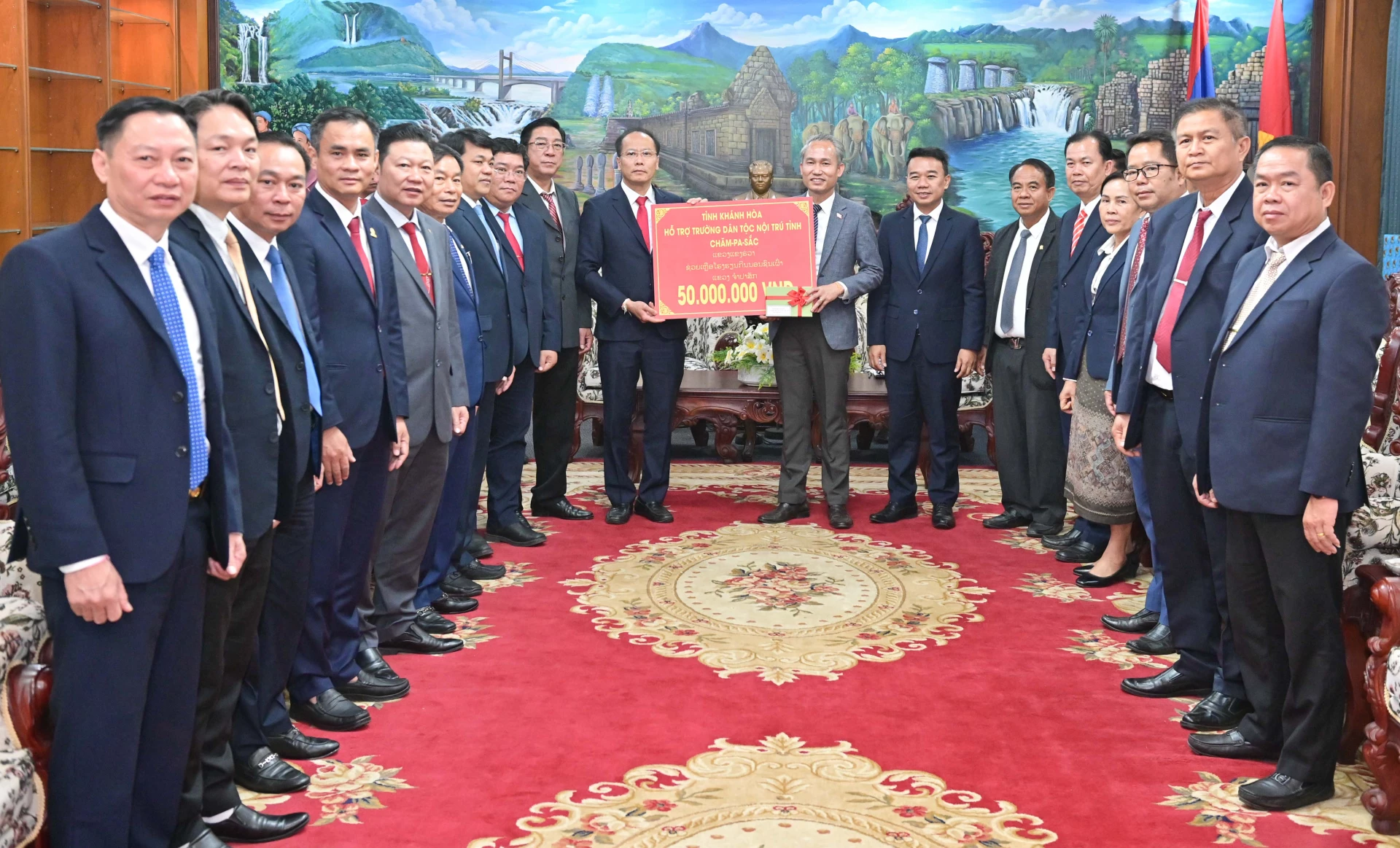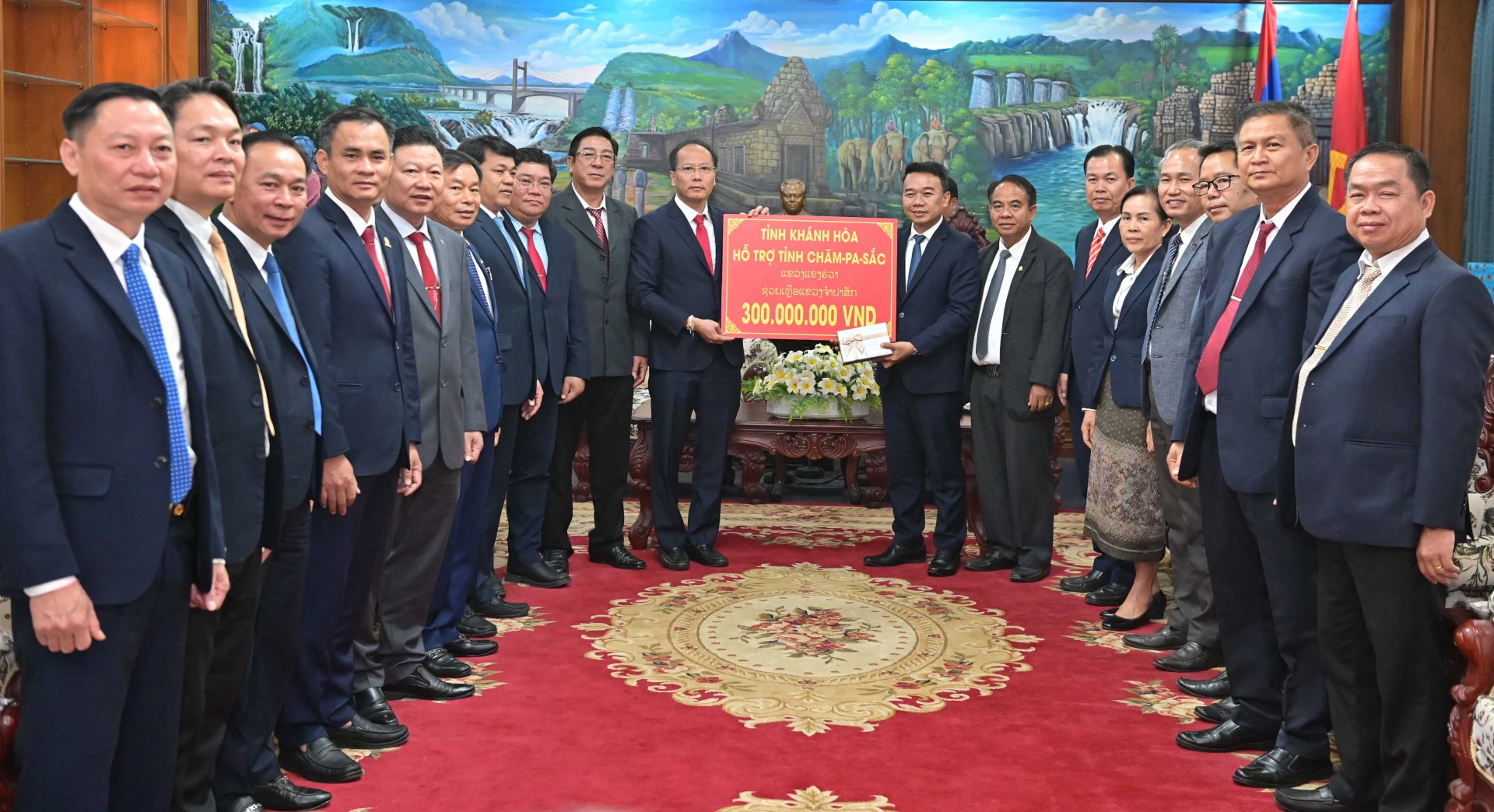 Tại buổi thăm, chúc Tết, lãnh đạo tỉnh Khánh Hòa đã trao kinh phí hỗ trợ của tỉnh Khánh Hòa cho Đảng bộ, chính quyền và Nhân dân tỉnh Champasak số tiền 300 triệu đồng; trao hỗ trợ Trường Dân tộc Nội trú tỉnh Champasak 50 triệu đồng.