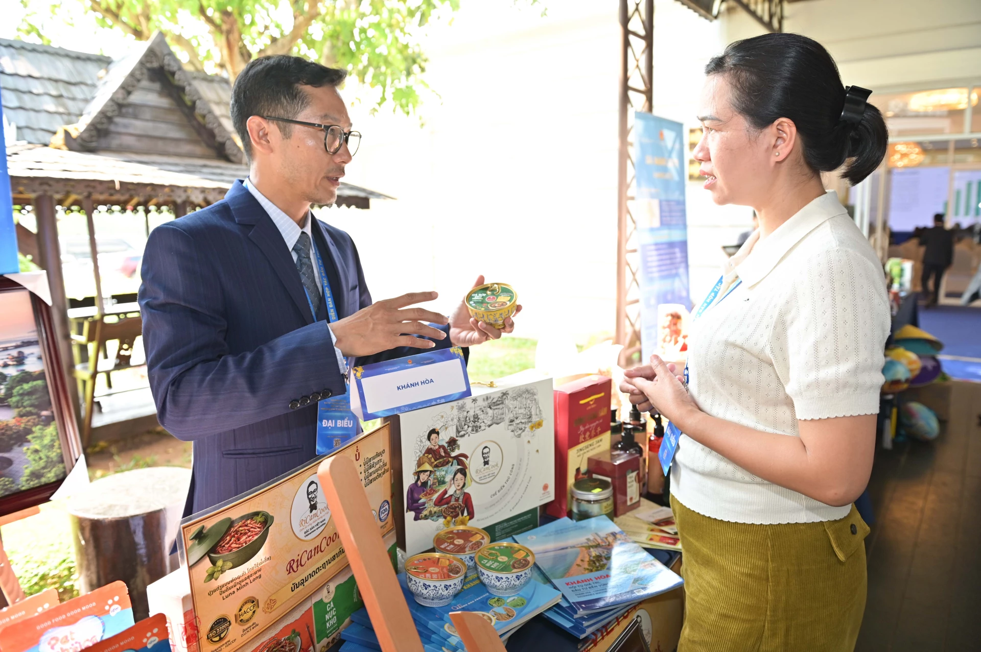Tham gia hội chợ, tỉnh Khánh Hòa có 13 doanh nghiệp tiêu biểu, trưng bày và giới thiệu các sản phẩm đặc trưng chất lượng cao, giàu tiềm năng xuất khẩu vào thị trường Lào như: Yến sào, thiết bị thể dục thể thao, nước mắm, nông sản - thủy sản chế biến, trà thảo mộc, tinh dầu đà điểu. Các sản phẩm đến từ những doanh nghiệp uy tín, có sản phẩm đạt chứng nhận Thương hiệu quốc gia, chứng nhận OCOP như: Công ty TNHH Nhà nước Một thành viên Yến sào Khánh Hòa; Công ty TNHH Việt Pháp; Công ty Cổ phần Thảo dược Liên kết Việt Nam; Công ty TNHH Khang Thần Hy; Công ty TNHH Thương mại Dịch vụ Vườn nho Thanh Thủy; Công ty TNHH Thực phẩm Đồ uống Viet54...