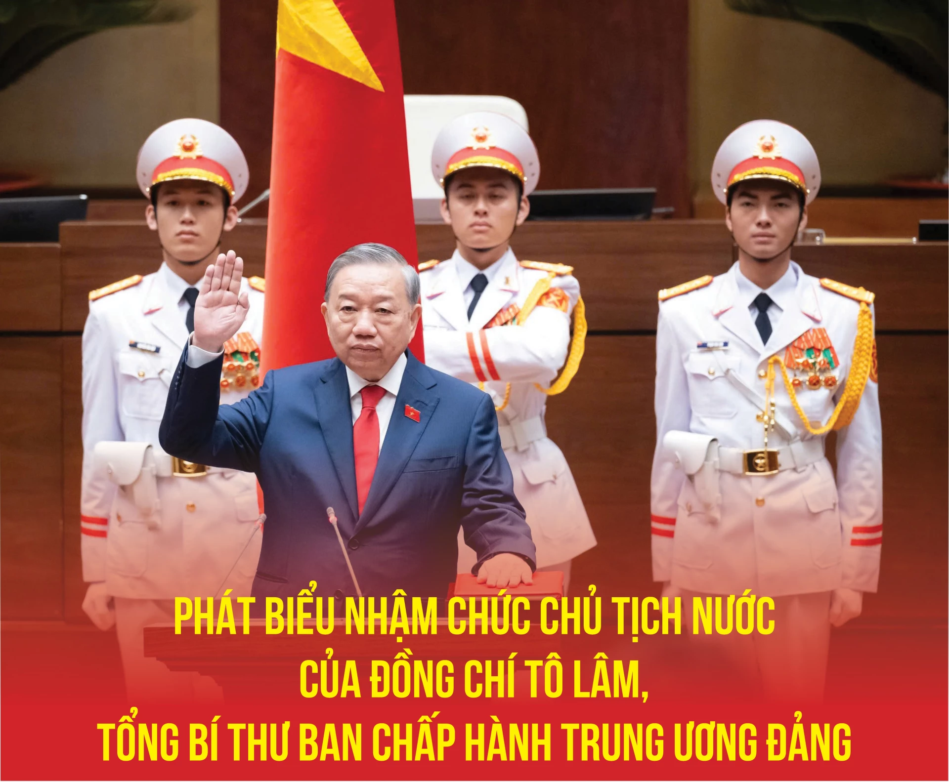 | Đồng chí Tô Lâm, Tổng Bí thư Ban Chấp hành Trung ương Đảng Cộng sản Việt Nam, Chủ tịch nước Cộng hòa Xã hội chủ nghĩa Việt Nam nhiệm kỳ 2026 - 2031 thực hiện Lễ Tuyên thệ nhậm chức. |