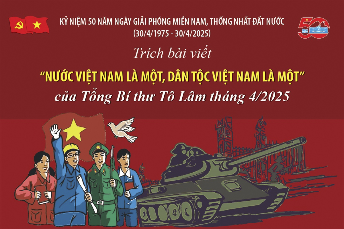 Nhân dịp kỷ niệm 50 năm Ngày Giải phóng miền Nam, thống nhất đất nước (30-4-1975 - 30-4-2025), đồng chí Tô Lâm, Tổng Bí thư Ban Chấp hành Trung ương Đảng Cộng sản Việt Nam đã có bài viết: "Nước Việt Nam là một, dân tộc Việt Nam là một".