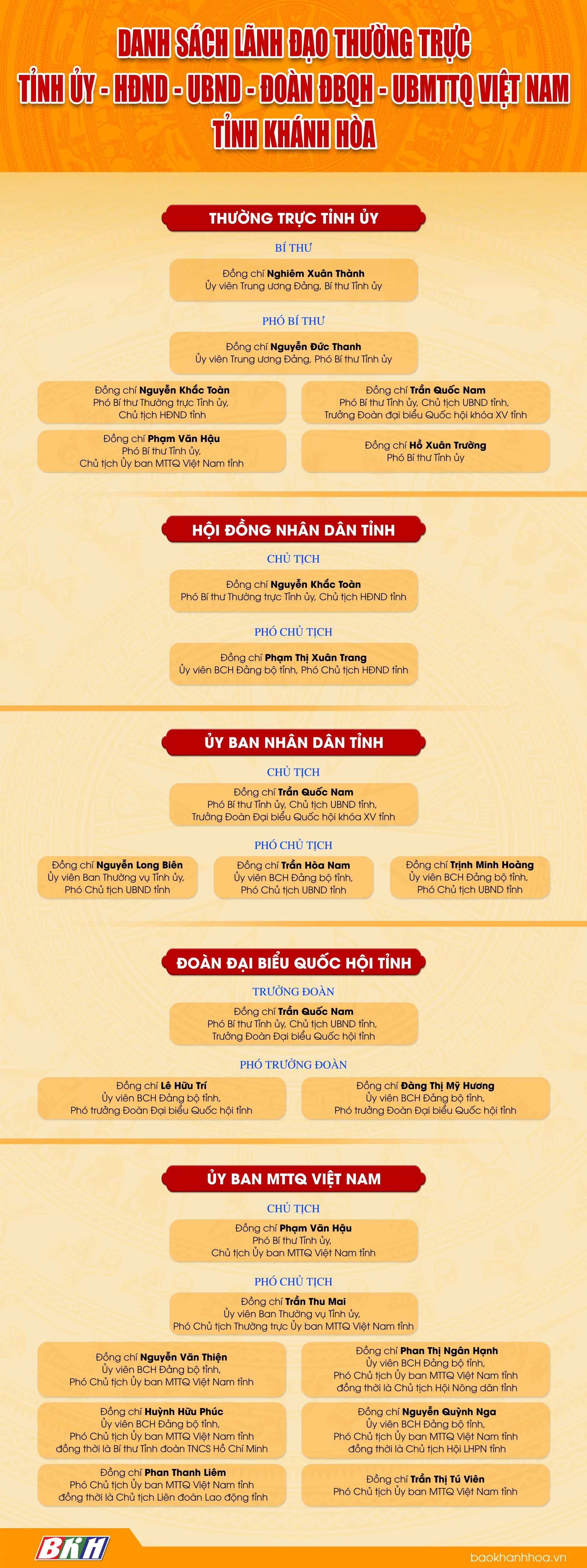 Danh sách lãnh đạo Thường trực Tỉnh ủy - HĐND - UBND - Đoàn ĐBQH - UBMTTQ Việt Nam tỉnh Khánh Hòa