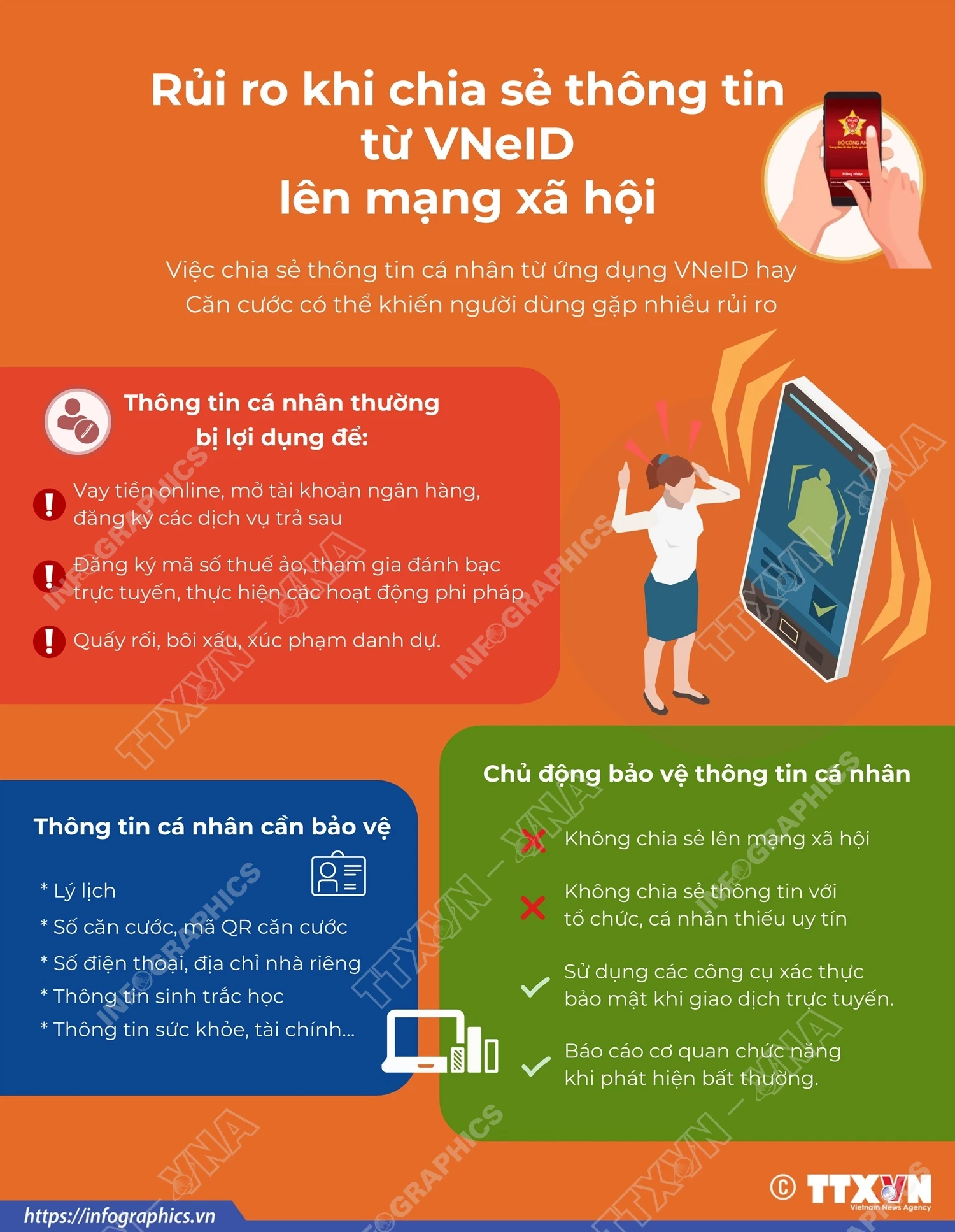 Việc chia sẻ thông tin từ VNeID lên mạng xã hội ẩn chứa nhiều rủi ro mà người dùng không thể chủ quan, đặc biệt trong bối cảnh lừa đảo trực tuyến đang gia tăng với tốc độ đáng báo động với các công nghệ tiên tiến như Deepfake và Deepvoice. Những công nghệ này cho phép tạo ra hình ảnh, video và âm thanh giả mạo một cách tinh vi, khiến người dùng khó lòng phân biệt thật giả.
