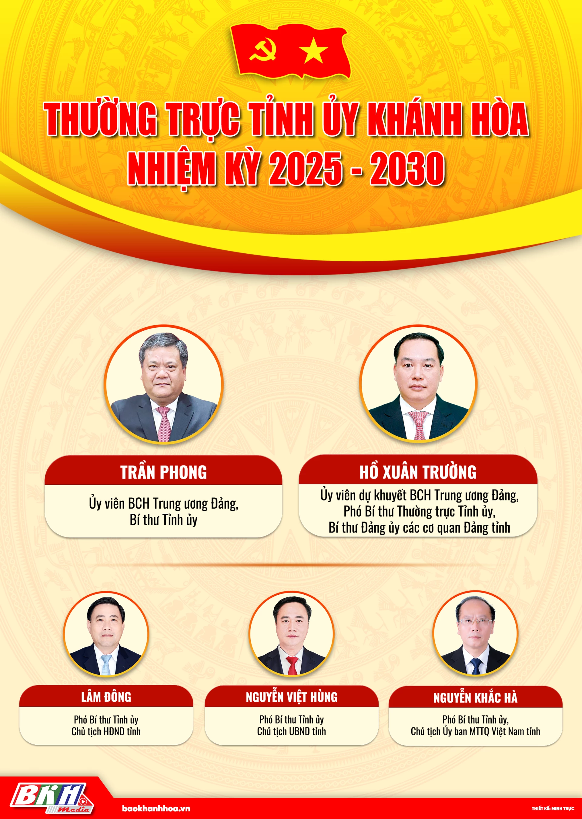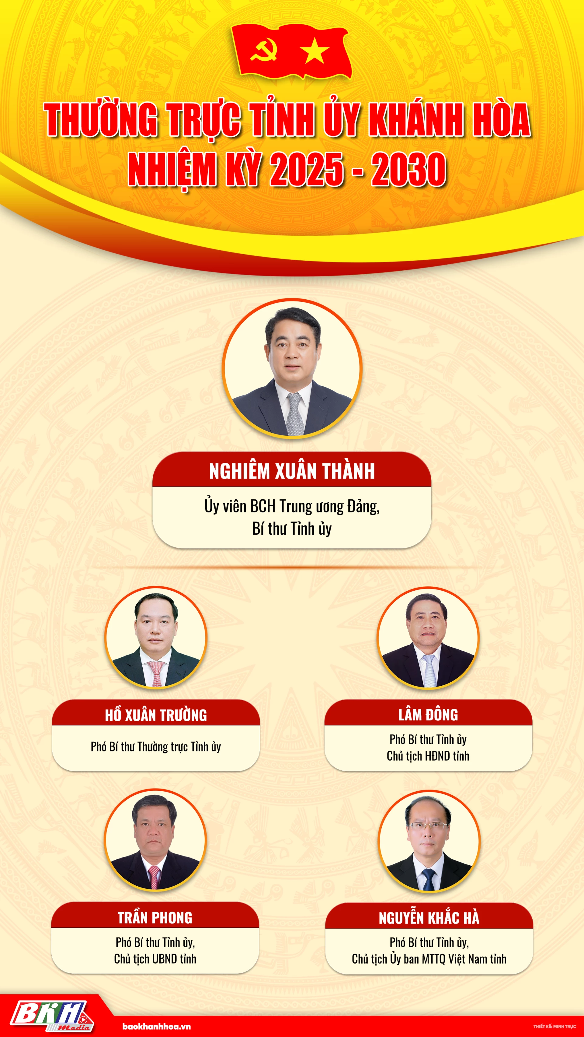 Báo và Phát thanh, Truyền hình Khánh Hòa xin trân trọng giới thiệu danh sách các đồng chí Thường trực Tỉnh ủy Khánh Hòa, nhiệm kỳ 2025 - 2030.