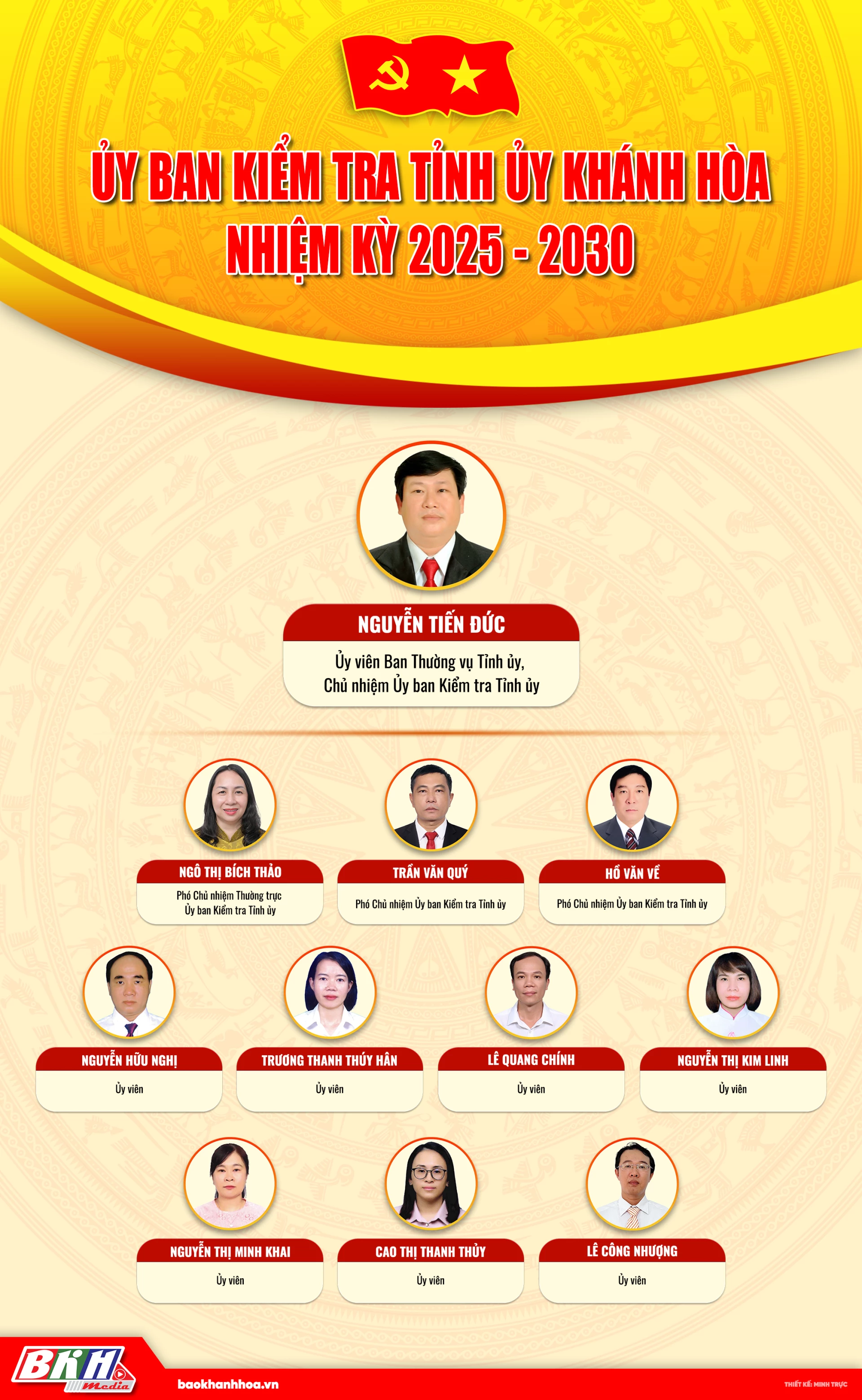 Báo và Phát thanh, Truyền hình Khánh Hòa xin trân trọng giới thiệu danh sách Ủy ban Kiểm tra Tỉnh ủy Khánh Hòa, nhiệm kỳ 2025 - 2030.