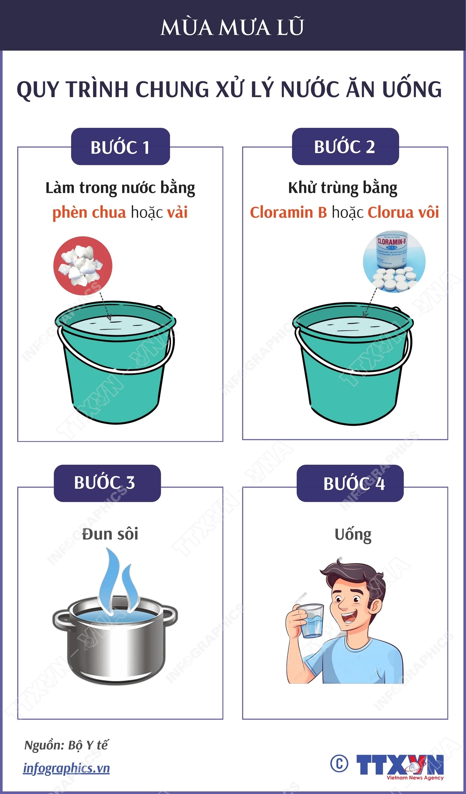 [Infographic] Quy trình chung xử lý nước ăn uống trong mùa mưa lũ