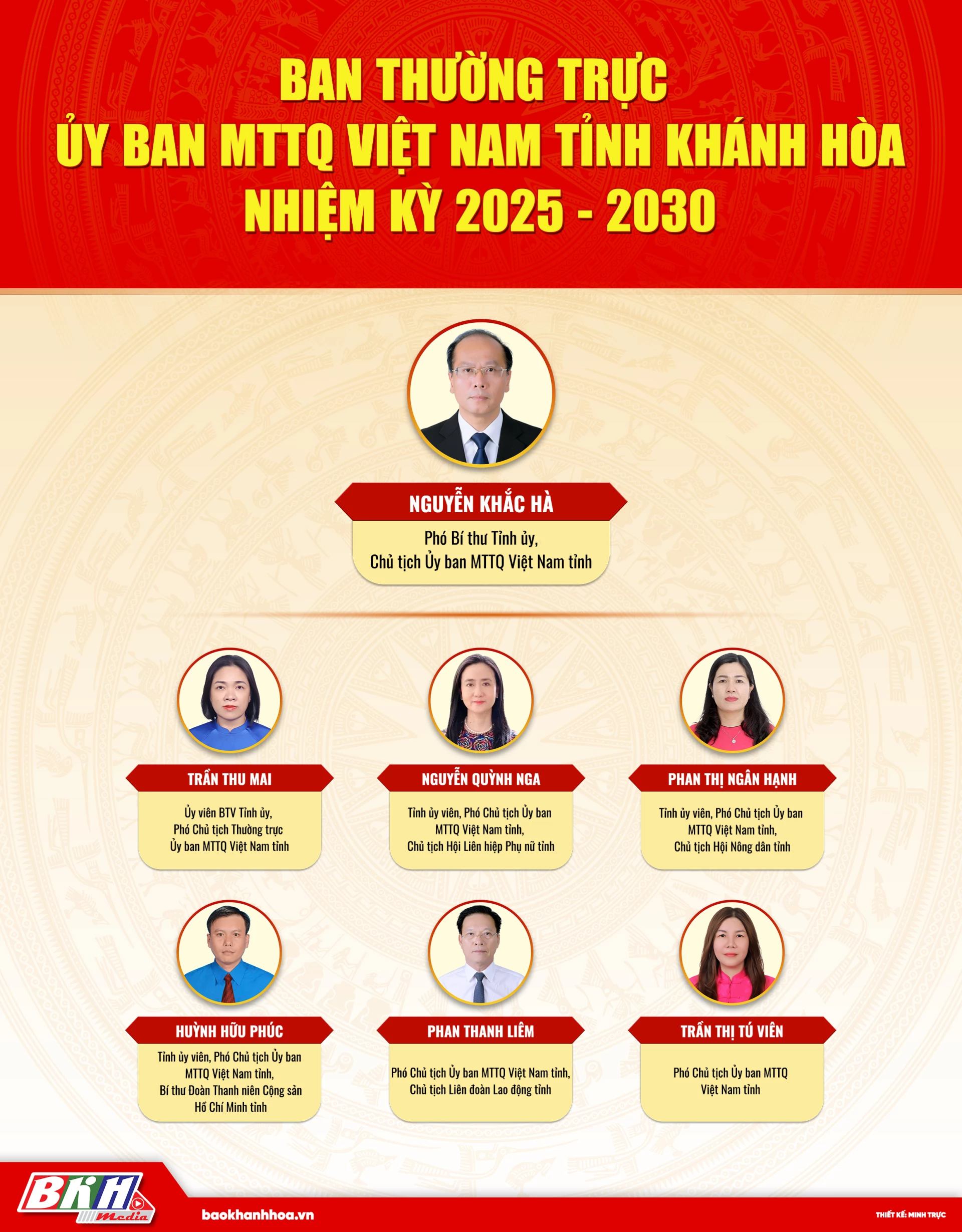 [Infographic] Ban Thường trực Ủy ban MTTQ Việt Nam tỉnh Khánh Hòa, nhiệm kỳ 2025 - 2030