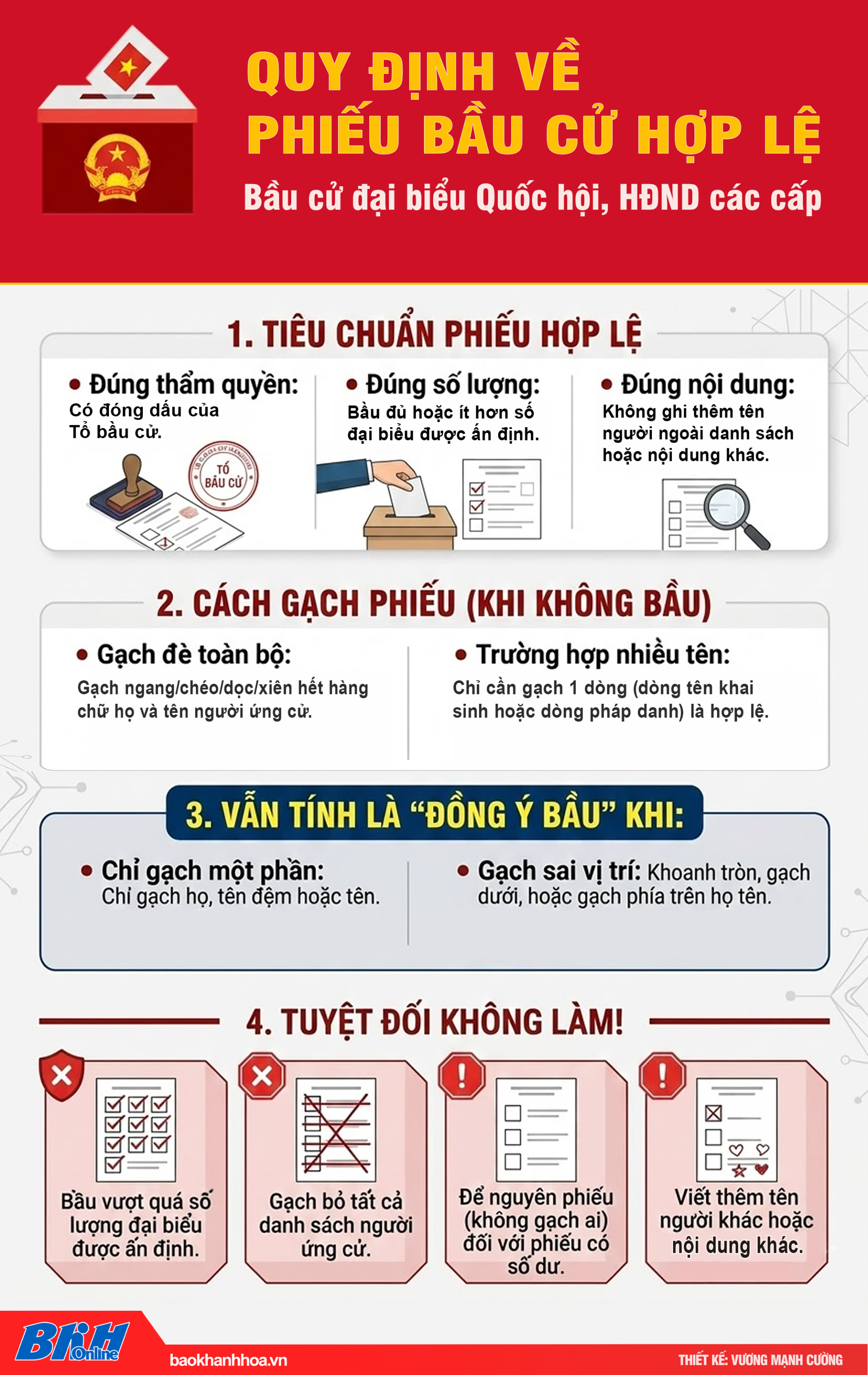 [Infographic] Bầu cử đại biểu Quốc hội, HĐND các cấp: Những phiếu bầu cử nào là phiếu bầu cử hợp lệ?