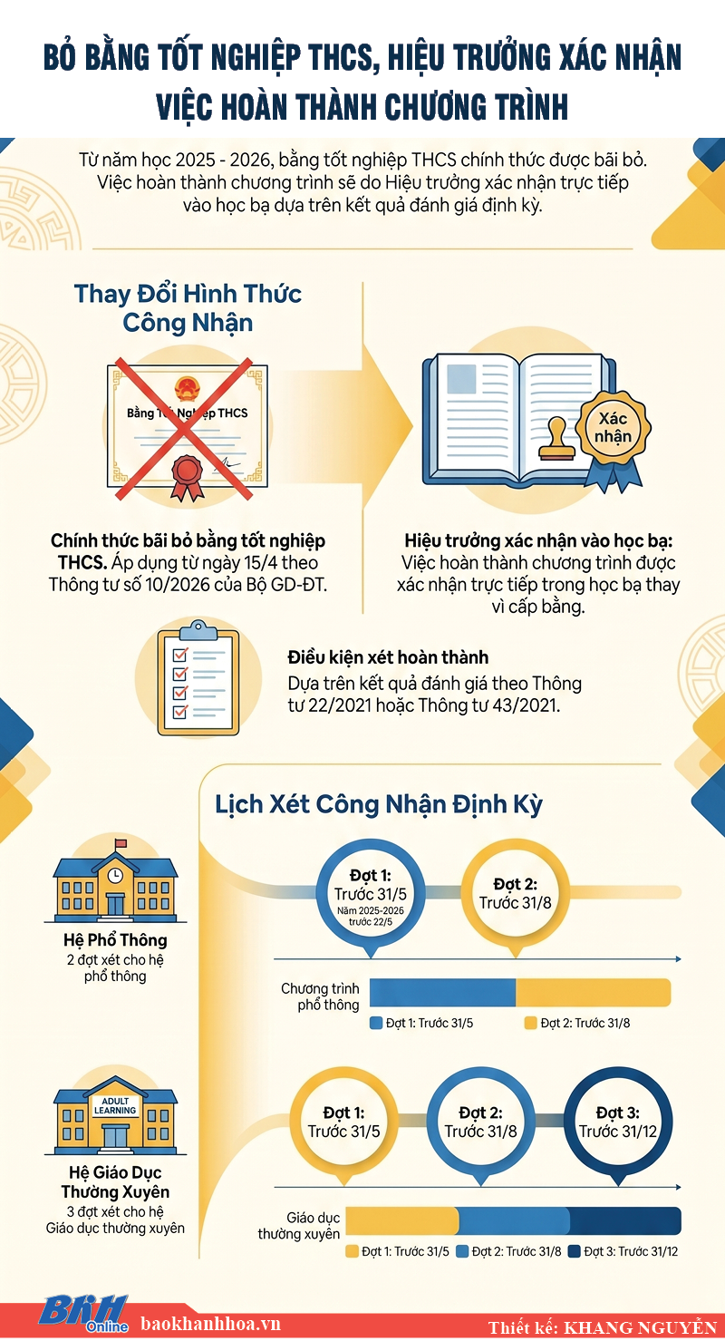 [Infographic] Bỏ bằng tốt nghiệp THCS, hiệu trưởng xác nhận việc hoàn thành chương trình