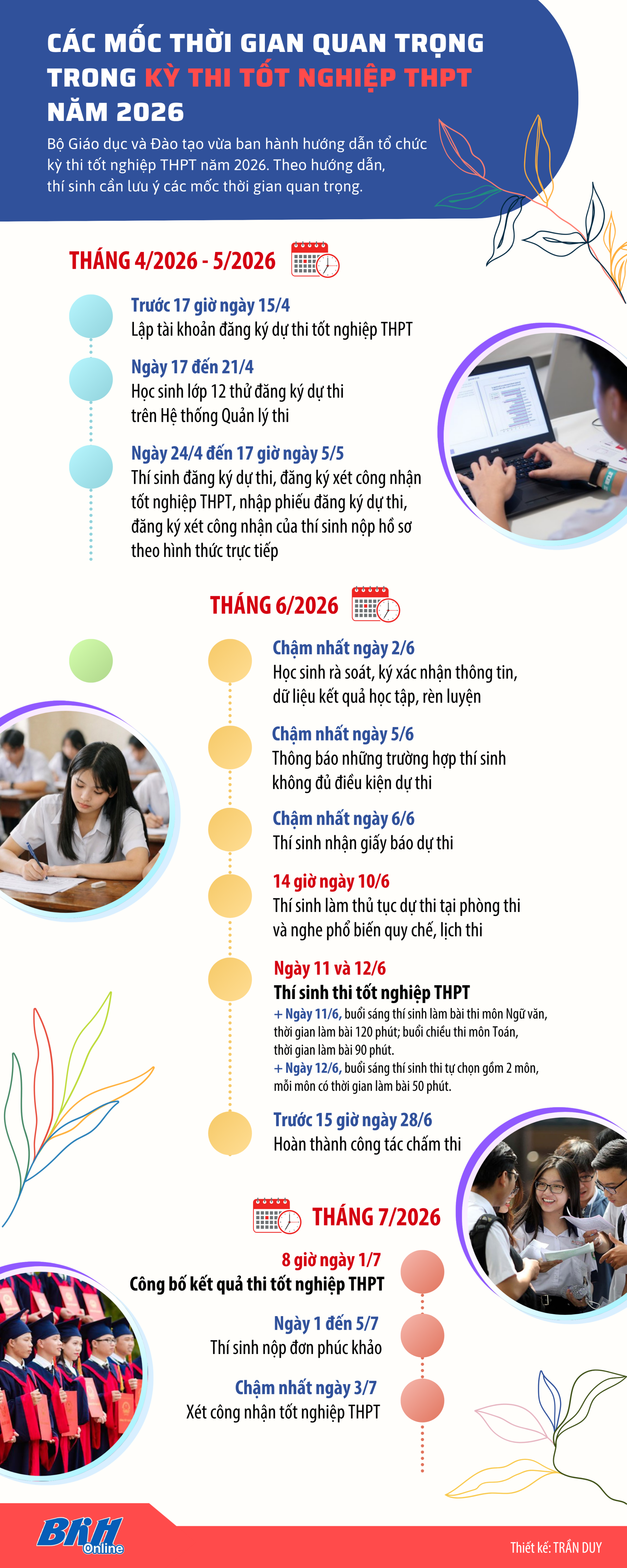 [Infographic] Các mốc thời gian quan trọng trong kỳ thi tốt nghiệp THPT năm 2026