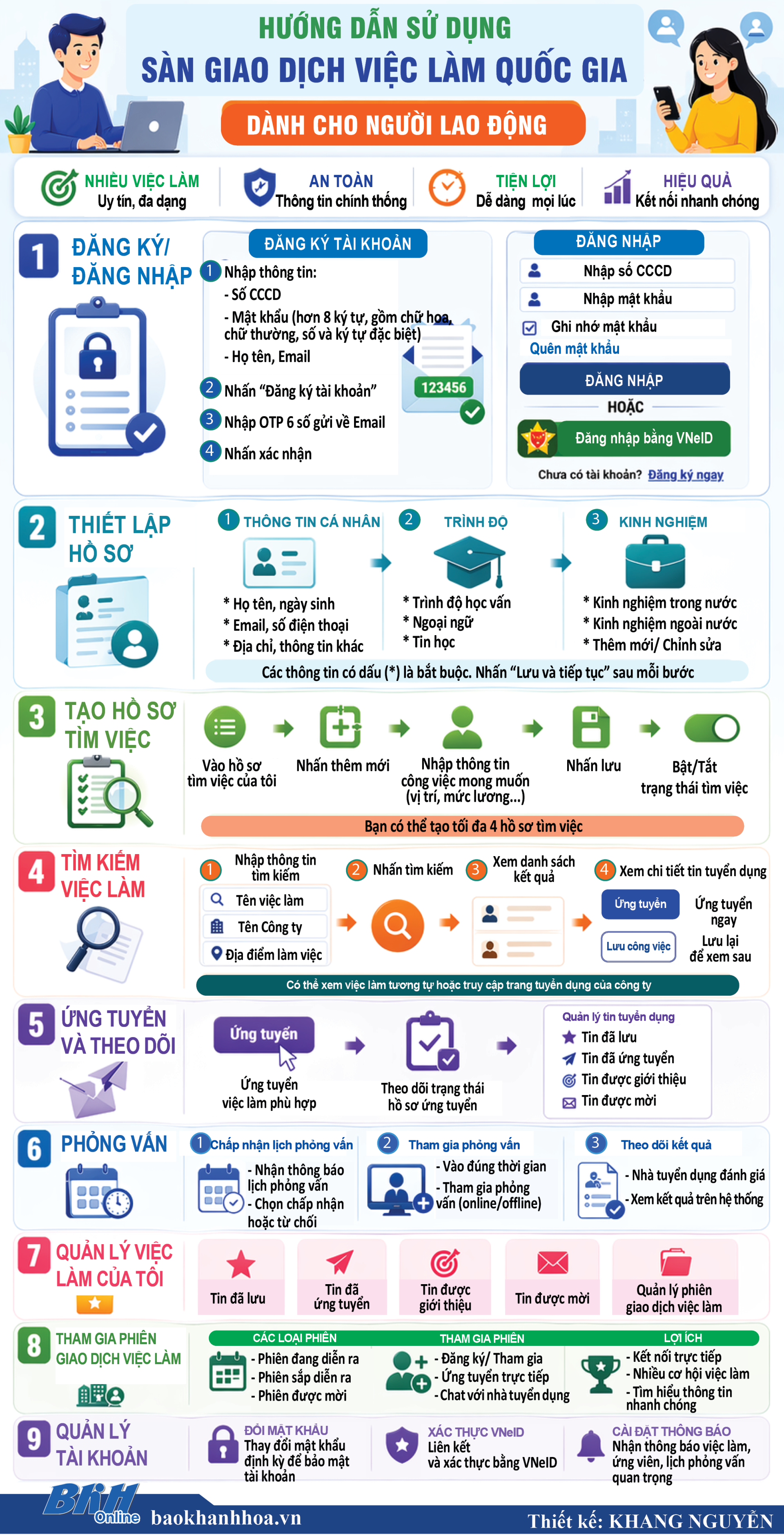Dưới đây là tóm tắt Hướng dẫn sử dụng Sàn giao dịch việc làm quốc gia dành cho người lao động.