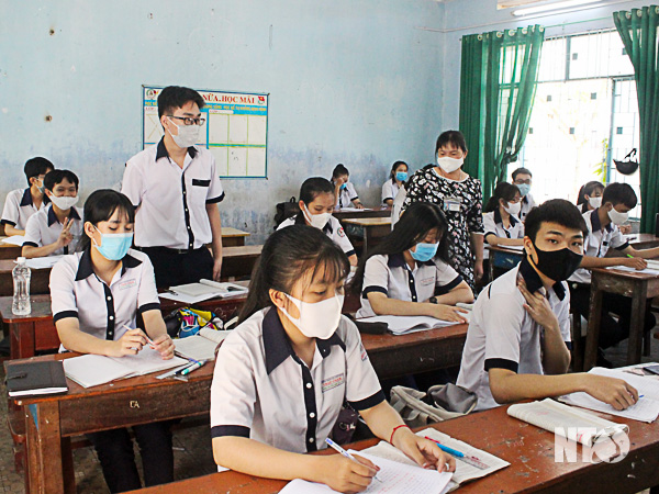 Cô giáo Trương Thị Bích Hạnh, GV chủ nhiệm lớp 12K13, Trường THPT Tháp Chàm chia sẻ: Trước khi dịch bệnh xảy ra, tôi chủ nhiệm lớp 12K13 nhưng khi tách lớp tôi chủ nhiệm “2 lớp”. Về chuyên môn thì từ dạy Ngữ văn cho 3 lớp, với 12 tiết/tuần, nay thành “6 lớp” với 24 tiết/tuần. Trước đó, chúng tôi cũng dạy online cho HS trong thời gian các em tạm nghỉ. Dạy và học trong mùa dịch COVID-19 tuy vất vả hơn trước song chúng tôi đều nỗ lực hoàn thành tốt nhiệm vụ được giao. Ngoài giảng dạy, chúng tôi cũng thường xuyên nhắc nhở HS không lơ là chủ quan và thực hiện nghiêm túc các giải pháp phòng, chống dịch bệnh. Cùng suy nghĩ như đồng nghiệp, thầy giáo Nguyễn Thành Hải, GV môn Giáo dục công dân bày tỏ: Nhìn chung, việc dạy và học trong mùa dịch COVID-19 vất vả hơn bình thường rất nhiều. Trước kia, mỗi tuần tôi dạy 13 tiết, nay tách lớp thì dạy 26 tiết (trong đó, ngày nhiều nhất dạy 8 tiết). Trong quá trình lên lớp, GV phải nói, phải giảng nên việc đeo khẩu trang gây không ít bất tiện. Tuy vậy, tôi và đồng nghiệp đều hiểu và thực hiện nghiêm túc nhiệm vụ chuyên môn, cũng như công tác phòng, chống dịch bệnh để làm gương cho HS. Trong những ngày qua, các lớp tôi dạy HS đi học khá đầy đủ và nền nếp. Đối với nội dung giảng dạy, tôi bám sát chương trình tinh giản của Bộ GD&ĐT, truyền đạt những kiến thức cơ bản, trọng tâm, kết hợp đưa ra các tình huống để HS xử lý nâng cao kiến thức, chuẩn bị cho kỳ thi THPT quốc gia sắp tới.