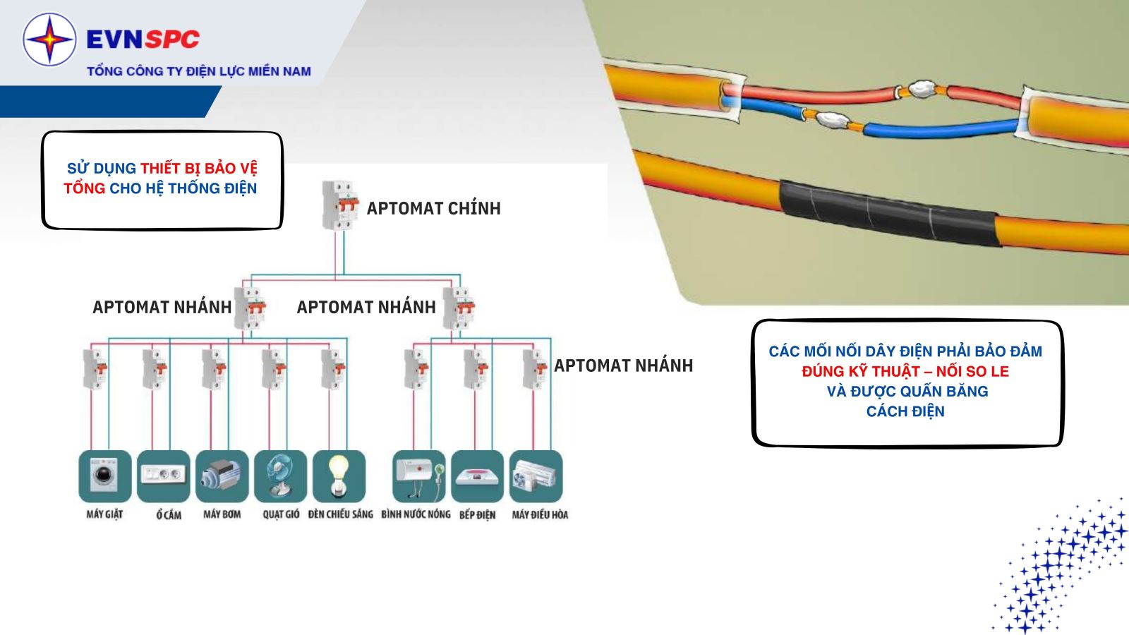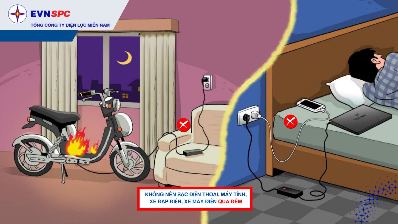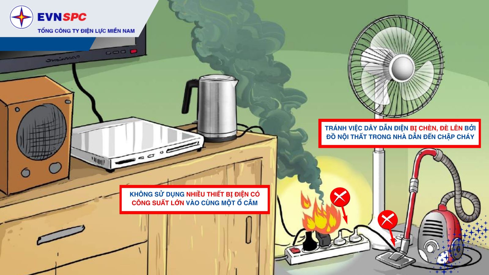Nhằm đảm bảo công tác phòng chống cháy nổ khi sử dụng điện, đặc biệt khi nhu cầu sử dụng điện của người dân ngày càng tăng cao, Tổng Công ty Điện lực miền Nam khuyến cáo bạn và gia đình của mình hãy nâng cao cảnh giác trong việc sử dụng điện thật an toàn để đảm bảo phòng tránh những rủi ro có thể xảy ra.