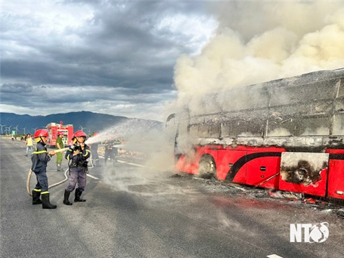 Khoảng 16 giờ 45 phút, ngày 29/8, xe ô tô khách BKS 92B-006.22 do anh Trần Đình Quốc Phong, SN 1974, ở Thị trấn Ái Nghĩa, tỉnh Quảng Nam điều khiển đang di chuyển trên cao tốc Cam Lâm - Vĩnh Hảo thì bất ngờ xảy ra cháy.