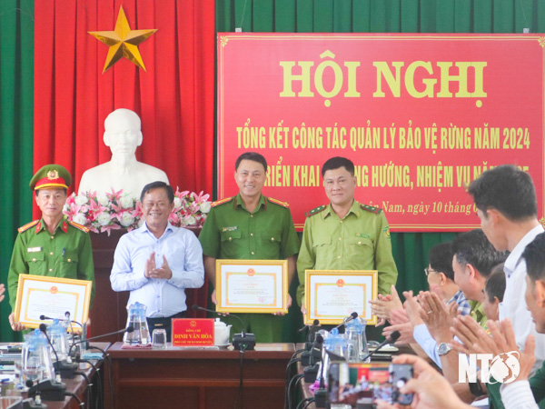 Dịp này, UBND huyện Thuận Nam tặng giấy khen cho 3 tập thể, 4 cá nhân có thành tích trong công tác phòng cháy, chữa cháy rừng và truy quét chống phá rừng năm 2024.