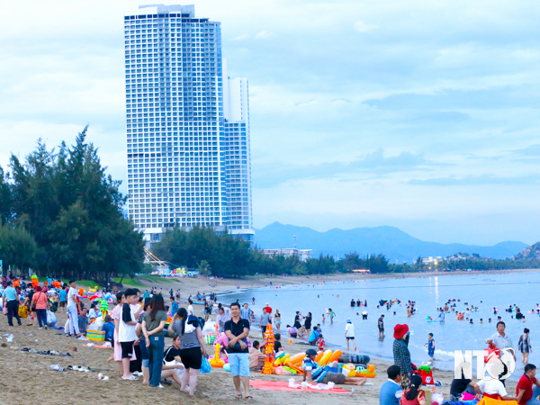 Bãi biển Bình Sơn - Ninh Chử những ngày giữa tháng 4 có rất đông du khách tìm đến để đón ánh bình minh và hòa mình với sóng biển. Nhiều du khách tận hưởng những ngày sóng êm, biển lặng để thả mình với những thuyền kayak lướt nhẹ trên mặt sóng tạo nên khung cảnh thơ mộng. Chị Nguyễn Thị Thảo Nguyên, du khách đến từ Tp. Đà Lạt (Lâm Đồng) cho biết: Gia đình mình thường xuyên xuống Ninh Thuận để du lịch biển vì khoảng cách khá gần, đặc biệt hơn nữa là thời điểm này biển ở Ninh Thuận trong xanh, bãi tắm rất sạch, ngoài tắm biển và tham quan các điểm ở Ninh Thuận, mình còn tranh thủ ghé Chợ Nại để mua hản sản đủ loại, tươi ngon mang về làm quà cho người thân và sử dụng trong bữa ăn gia đình.