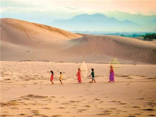 Đứng trên đỉnh đồi cát, du khách có thể phóng tầm mắt chiêm ngưỡng toàn cảnh Biển Đông xanh biếc mênh mông, ngắm nhìn dãy núi Chà Bang hùng vĩ hoặc đắm mình trong khung cảnh yên bình những làng mạc của đồng bào Chăm, những cánh đồng lúa xanh mướt và những vườn nho, táo trĩu quả trải dọc trên con đường dẫn vào đồi cát, tạo nên một hành trình khám phá đầy thú vị.