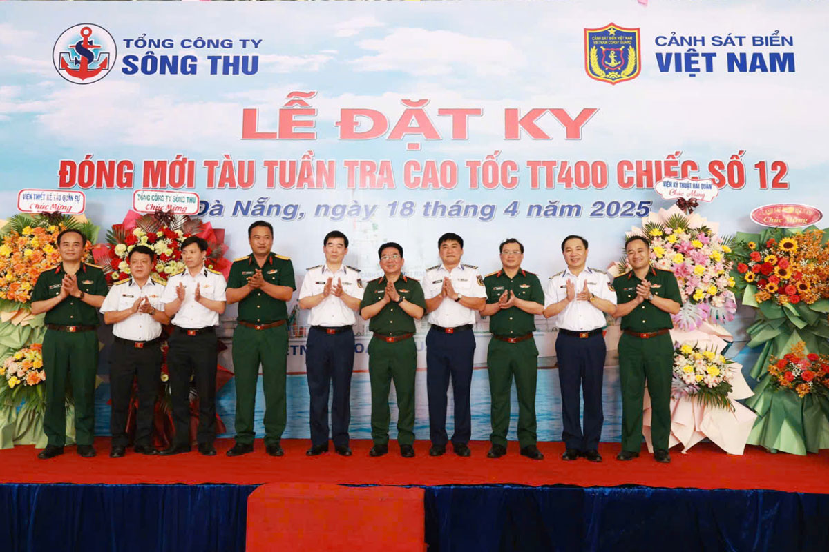 Tại TP Đà Nẵng, Cảnh sát biển Việt Nam và Tổng công ty Sông Thu/Tổng cục Công nghiệp Quốc phòng vừa tổ chức Lễ đặt ký đóng mới tàu tuần tra cao tốc TT-400 chiếc số 12. Đến dự có Trung tướng Bùi Quốc Oai, Chính uỷ Cảnh sát biển Việt Nam; Thiếu tướng Phạm Thanh Khiết, Phó Chủ nhiệm Tổng cục Công nghiệp Quốc phòng.