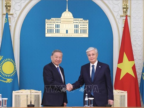 Nhận lời mời của Tổng thống Cộng hòa Kazakhstan Kassym-Jomart Tokayev, Tổng Bí thư Tô Lâm và Phu nhân cùng Đoàn đại biểu Việt Nam đã thăm cấp Nhà nước tới Cộng hòa Kazakhstan từ ngày 5 - 7/5/2025. Trong khuôn khổ chuyến thăm, hai Bên đã ra Tuyên bố chung về việc thiết lập quan hệ Đối tác chiến lược Việt Nam – Kazakhstan.