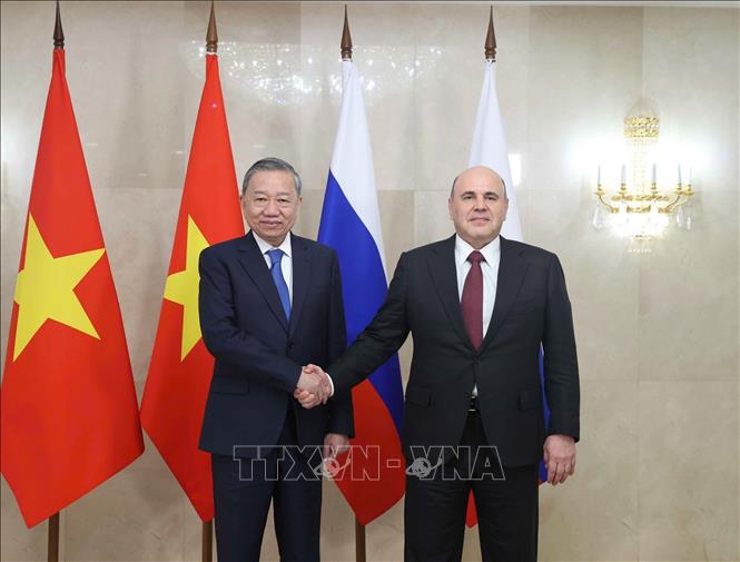 Theo đặc phái viên TTXVN, ngày 8/5, tại Trụ sở Chính phủ Nga ở thủ đô Moskva, Tổng Bí thư Tô Lâm đã có cuộc hội kiến với Thủ tướng Liên bang Nga Mikhail Mishustin.