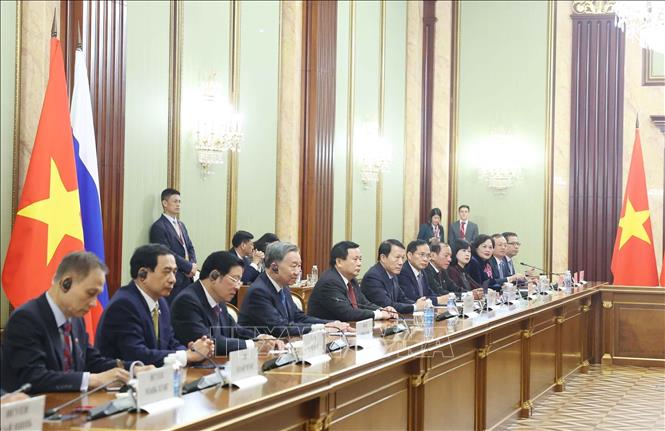 Tổng Bí thư Tô Lâm nhấn mạnh, Đảng, Nhà nước và nhân dân Việt Nam luôn trân trọng và ghi nhớ sâu sắc sự ủng hộ quý báu của Liên Xô trước đây và Liên bang Nga ngày nay trong sự nghiệp đấu tranh giải phóng dân tộc cũng như công cuộc xây dựng và bảo vệ Tổ quốc. Trong bối cảnh quốc tế biến động nhanh chóng, Việt Nam đặc biệt coi trọng quan hệ hữu nghị truyền thống, sẵn sàng hợp tác chặt chẽ với Liên bang Nga để nâng tầm quan hệ.