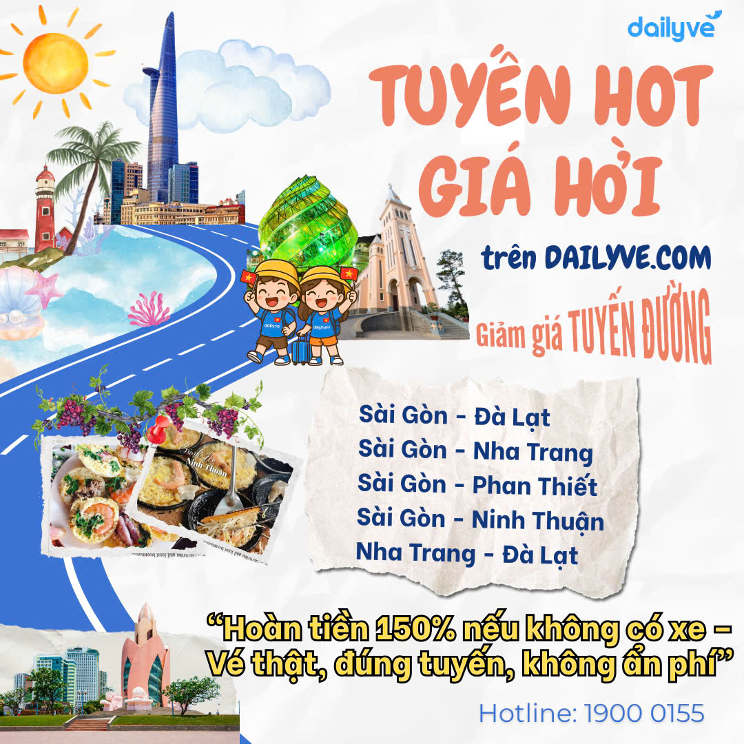 Ông Bùi Văn Ninh, Giám đốc Công ty TNHH Goilaco đơn vị quản lý, vận hành nền tảng Dailyve cho biết: Như một lời chào, lời chúc đến với tất cả khách hàng trong mùa cao điểm du lịch, Dailyve chúng tôi tiên phong triển khai chương trình khuyến mãi, giảm giá vé cho khách hàng ngay trong tháng 5 này. Cụ thể: Hiện chúng tôi đã triển khai chương trình khuyến mãi giảm giá đến 10% đối với hành khách đặt vé khứ hồi các tuyến Sài Gòn - Ninh Thuận - Nha Trang - Phan Thiết - Đà Lạt.