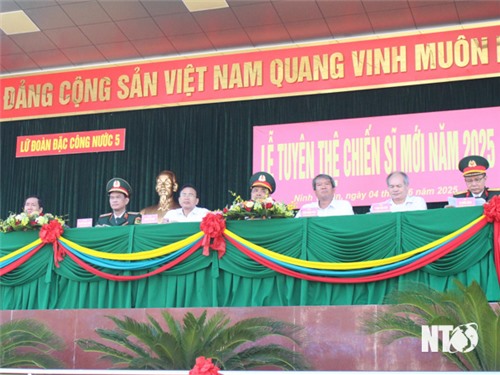 Sáng 4/6, Lữ đoàn Đặc công nước 5 tổ chức lễ tuyên thệ chiến sĩ mới năm 2025. Đến dự có đồng chí Thiếu tướng Nguyễn Quốc Duẩn, Chính ủy Binh chủng Đặc Công; Phan Tấn Cảnh, UVTV Tỉnh ủy, Bí thư Huyện ủy Ninh Hải.