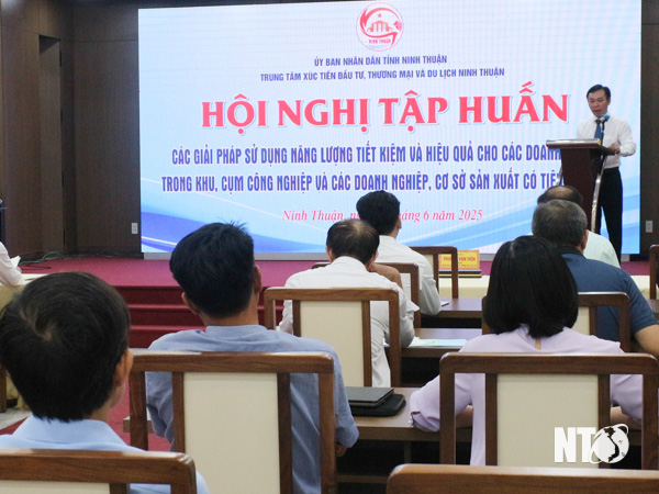 Sáng 20/6, Trung tâm Xúc tiến Đầu tư, Thương Mại và Du lịch tỉnh Ninh Thuận tổ chức Hội nghị tập huấn các giải pháp sử dụng năng lượng tiết kiệm và hiệu quả cho các doanh nghiệp trong Khu, Cụm công nghiệp và các doanh nghiệp, cơ sở sản xuất có tiêu thụ điện, với nội dung chuyên đề “Chuyển đổi số trong tiết kiệm năng lượng”.