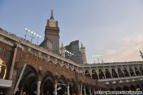 Tổng thể kiến trúc này được gọi là Tháp Abraj Al Bait (còn gọi là Tháp đồng hồ của khách sạn Mecca Royal ) đứng phía trước của Kaaba ở Mecca, địa điểm linh thiêng nhất của Hồi giáo.