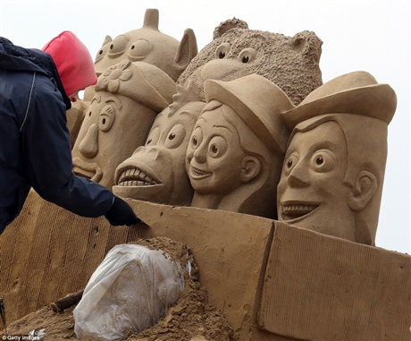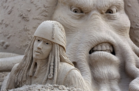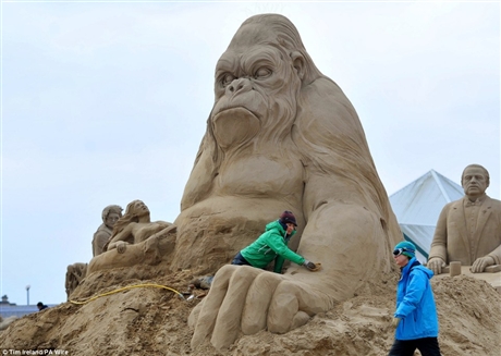 Các tác phẩm điêu khắc nghệ thuật bằng cát, phác họa những nhân vật điện ảnh nổi tiếng, diễn ra tại Liên hoan điêu khắc trên cát ở Anh đang thu hút sự chú ý của nhiều người.