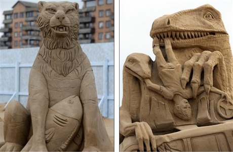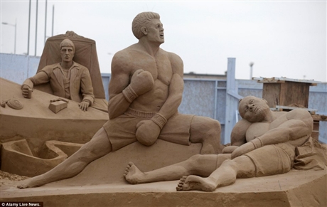 Một màn đấu quyền anh được tái hiện bằng những tượng cát