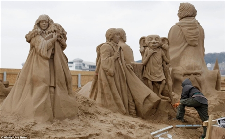 Các nhân vật của Harry Potter, bộ phim chuyển thể từ cuốn truyện nổi tiếng xuất hiện trên cát