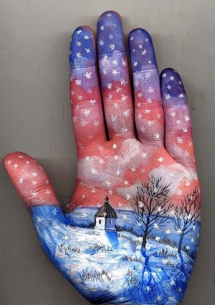 Với tài năng nghệ thuật của mình, họa sĩ người Nga Svetlana Kolosov đã biến bàn tay của cô thành những bức tranh đầy màu sắc được vẽ bằng sơn.