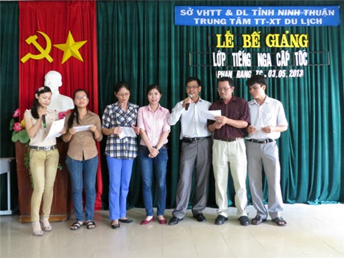 Trong thời gian 2 tháng, các học viên được học vốn từ vựng cơ bản và luyện tập các kỹ năng giao tiếp bằng tiếng Nga để phục vụ tốt nhu cầu giao tiếp của du khách Nga đến Ninh Thuận. Kết quả kiểm tra, có 11 học viên đạt loại giỏi, 29 học viên đạt loại khá và 52 học viên trung bình.