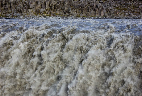 Nước đổ xuống từ dòng Dettifoss chảy xuống từ những hồ băng trên núi cao và đổ vào con sông Fjollum bên dưới. Thác nước có chiều rộng 100 mét và độ cao 45 mét, thẳng đứng từ vách đá Jokulsargljufur hiểm trở.
