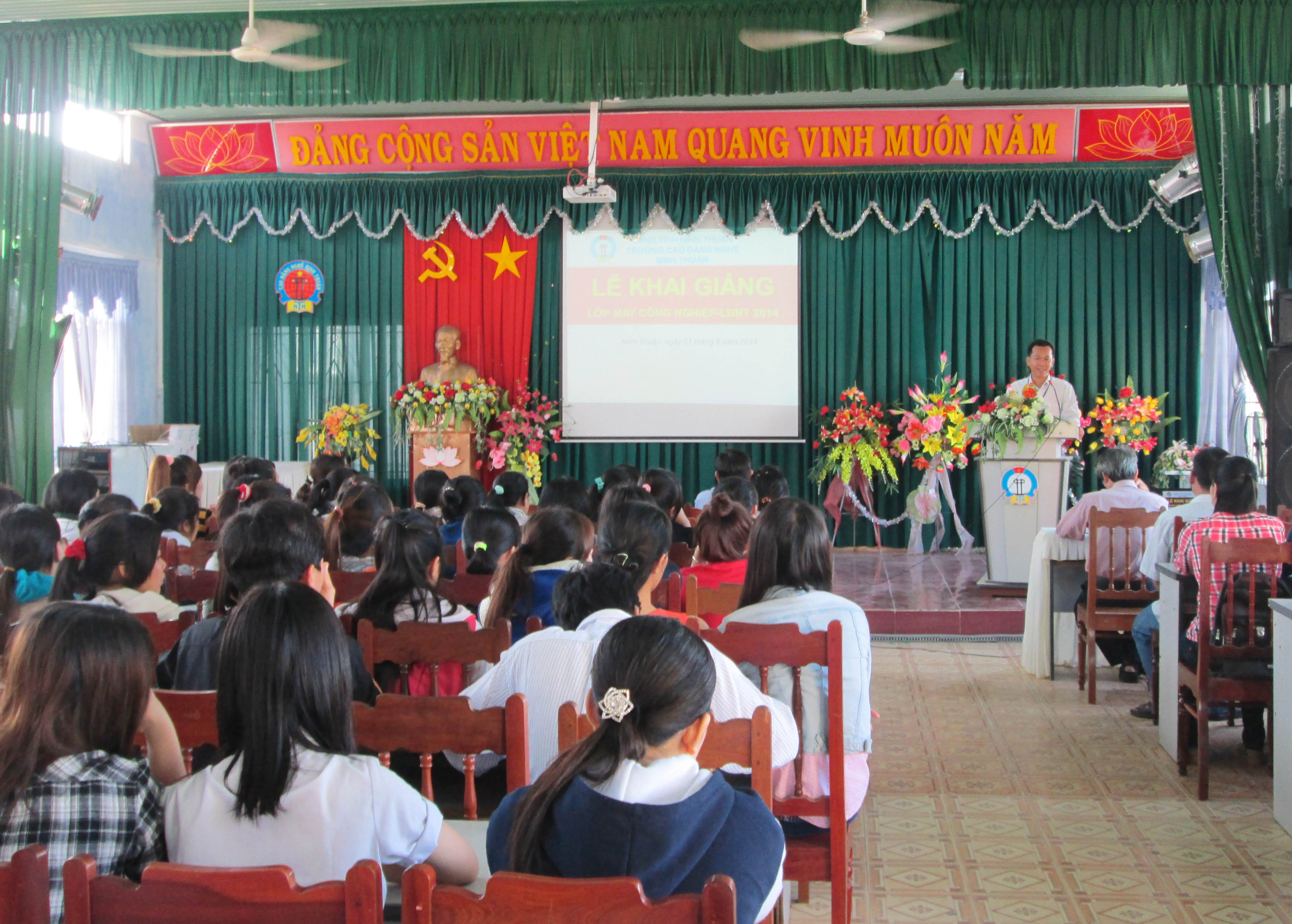 (NTO) Ngày 1-6, Trường Cao đẳng nghề Ninh Thuận phối hợp với Công ty TNHH May Tiến Thuận tổ chức khai giảng lớp sơ cấp nghề May công nghiệp cho 94 học viên trên địa bàn tỉnh.