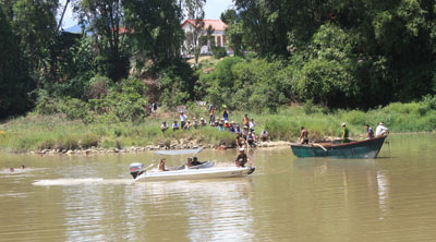 | Huy động nhân lực, phương tiện dò tìm thi thể anh Nguyễn Vĩnh Huy. |